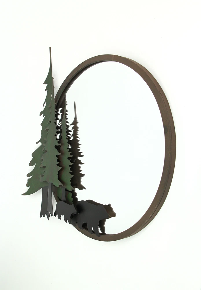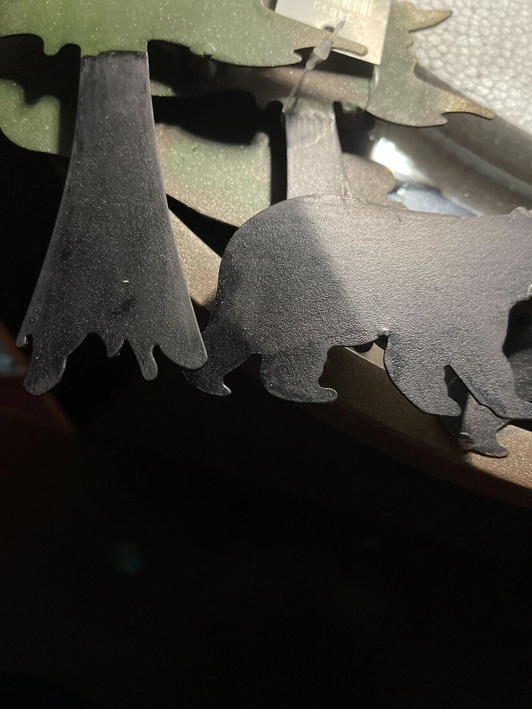 NOTE: DUE TO SCRATCHES AND DENTS IN THE METAL this item is being sold at a reduced price. Please see last photo for damages/defects. Add some reflective forest flair to your home decor with this black bear themed wall hanging vanity mirror. Crafted from high quality metal with laser cut details for a decorative mirror that will last for years. Measuring 22.5 inch long, 1.5 inch wide, 19.75 inch high, with two built-in hangers on the back, this wall mirror is ready for quick and simple mounting for use in any bathroom, bedroom, hallway, living room, or den. A great way to give your home a dash of lodge style or as a gift for forest loving friends and family. Our eBay Store About Us Add to Favorite Sellers Black Bear Forest Wall Mirror Decorative Metal Bathroom Bedroom Lodge Accent NOTE: DUE TO DENTS IN THE METAL this item is being sold at a reduced price. Please see last photo for damages/defects. NOTE - DUE TO DENTS IN THE METAL this item is being sold at a reduced price. Please see last photo for damages/defects. OVERALL SIZE - 22.5 Inch Long, 1.5 Inch Wide, 19.75 Inch High DURABLE MATERIAL - Crafted of High Quality Metal For Years of Maintenance Free Display VERSATILE MIRROR - Great For Your Bathroom, Bedroom, Hallway, or Den DETAILED CUT - Laser Cut Details For A Stunning Wall Sculpture NOTE: DUE TO SCRATCHES AND DENTS IN THE METAL this item is being sold at a reduced price. Please see last photo for damages/defects. Add some reflective forest flair to your home decor with this black bear themed wall hanging vanity mirror. Crafted from high quality metal with laser cut details for a decorative mirror that will last for years. Measuring 22.5 inch long, 1.5 inch wide, 19.75 inch high, with two built-in hangers on the back, this wall mirror is ready for quick and simple mounting for use in any bathroom, bedroom, hallway, living room, or den. A great way to give your home a dash of lodge style or as a gift for forest loving friends and family. Product Details Color Multicolored Height 19.75 Length 22.5 Weight 6.7 LB