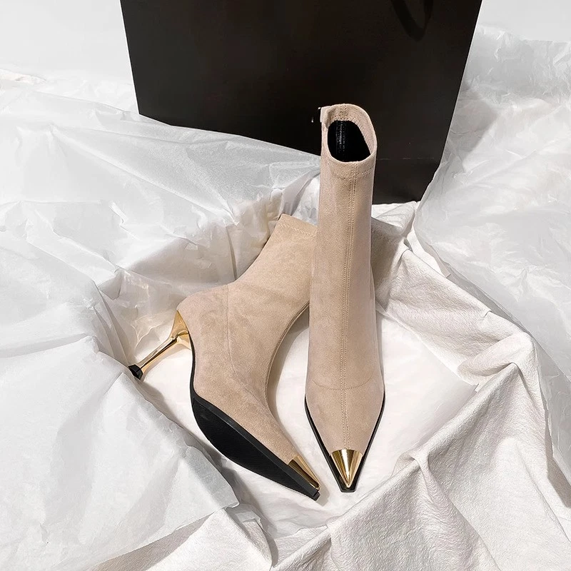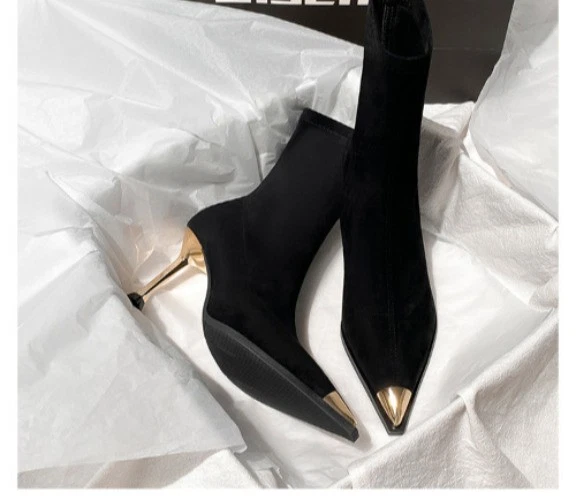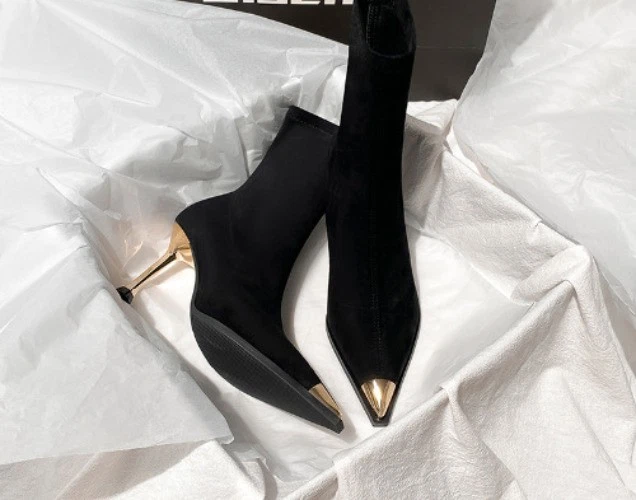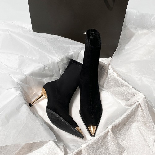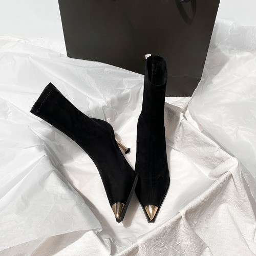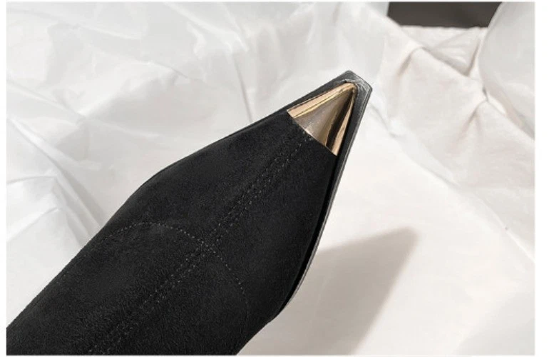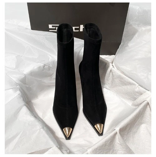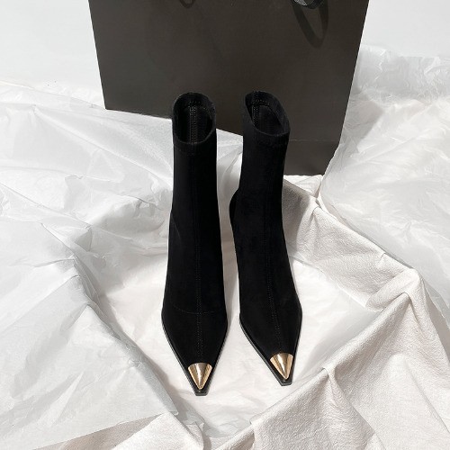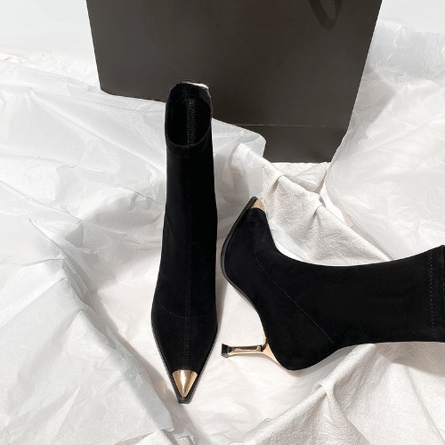 Black Boots, Female Pointed Suede High Heels, Short Boots, Thin Heels