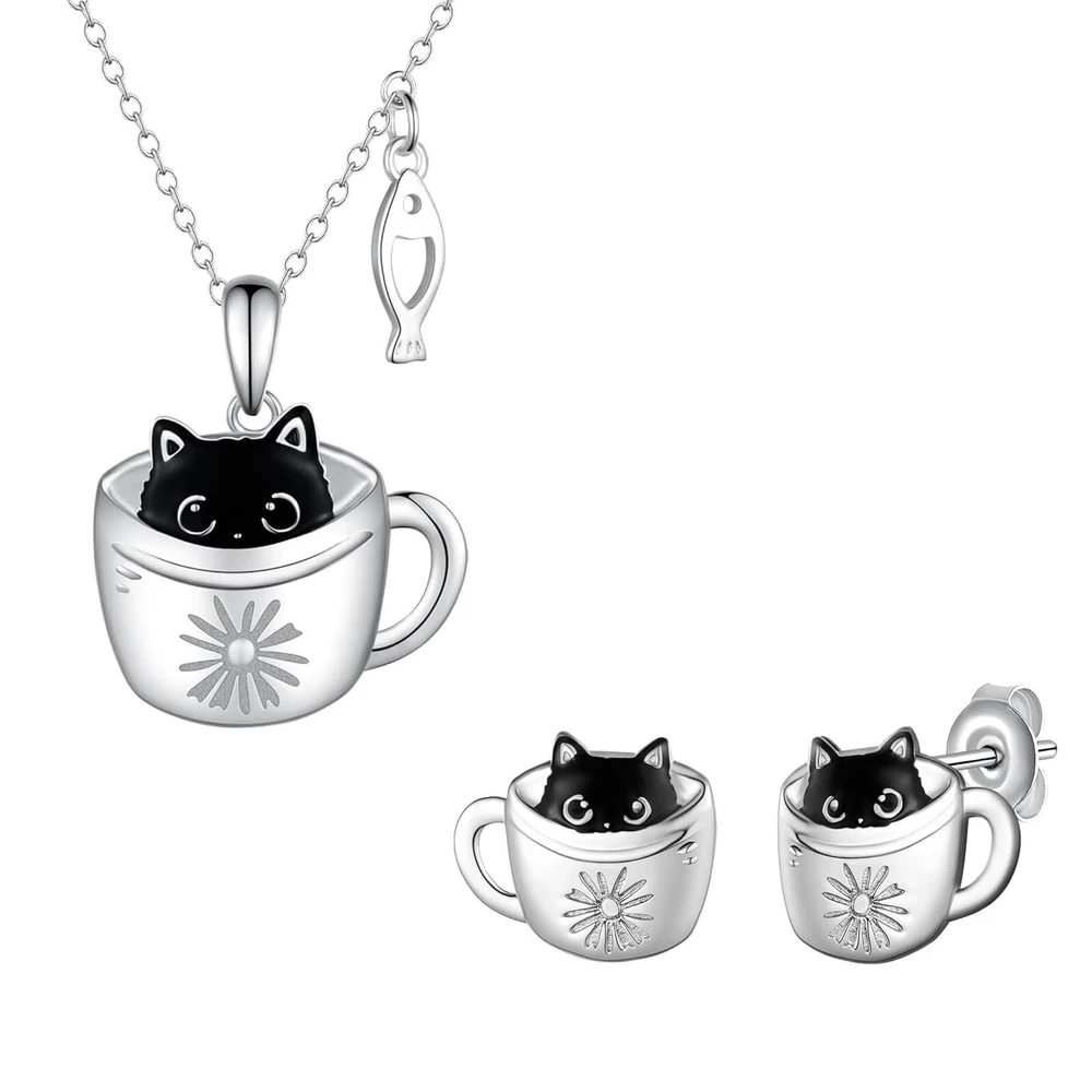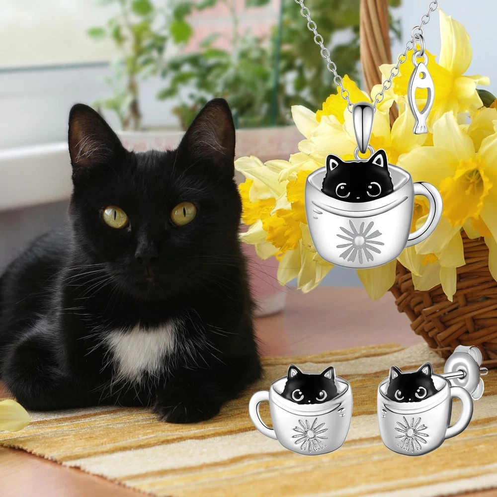 Black Cat Cup Necklace and Earrings 925 Sterling Silver Black Cat Jewelry Gifts for Women Product Details Department : womens Date First Available : June 4, 2024 Manufacturer : SVODEA Brand, Seller, or Collection Name: SVODEA Metal stamp: 925 Sterling Silver Metal: Silver Material: Sterling Silver Setting: Bead Chain: Rolo Clasp: Lobster