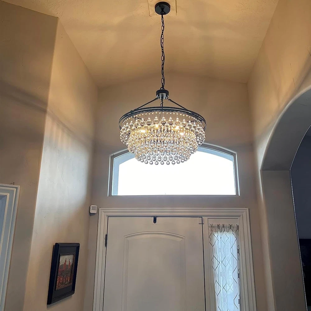 Store New Arrivals Add to Favorite View Feedback Contact Black Crystal Chandelier 24 Inch, Modern Farmhouse Light Fixtures Ceiling Hanging Crystal Pendant Lighting for Dining Room, Kitchen Island, Living Room, Bedroom, 3 Tiers Description Light Source Type LED Style Modern Number of Items 1 Power Source Corded Electric Fixture Type Non Removable Number of Light Sources 6 Control Method App Embellishment Crystal Batteries Included? No Lighting Method Downlight Controller Type Push Button Unit Count 1.0 Count Room Type Entryway, Kitchen, Bedroom, Living Room, Dining Room Assembly Required Yes Product Dimensions 23.6"L x 23.6"W x 60"H Material Metal Collection crystal chandelier Installation Type Hanging, Ceiling Mount Finish Type Matte Black Specific Uses For Product Indoor use only Included Components Mounting Hardware Indoor/Outdoor Usage Indoor Water Resistance Level Not Water Resistant Batteries Required? No Warranty Type Limited Item Weight 26.9 pounds Light fixture form Chandelier Special Features Dimmable Special Feature Dimmable Bulb Base E12 Shade Color black Mounting Type Hanging,Ceiling Mount Color Black Wattage 360 watts Shape Round Voltage 110 Volts Plug Format A- US style Shade Material Crystal Finish types Matte Black Switch Type Push Button Black Chandelier with Crystal Accents: This 6-light tiered chandelier is the perfect pick for bringing brightness and glamour to your entryway or living room. It showcases three tiers of crystal accents, while the metal frame boasts a matte black finish for contrast Crystal Chandelier Dimensions: Overall-23.6 inches Dia x 60 inches H; Chain Length- 35.4inches, length adjustable, suit for flat or slope ceiling Easy Installation: All mounting hardware and a detailed mounting instructional manual are included. It requires assembly and took a little time to put on all the crystals but it is so worth it since the light is stunning Bulbs Requirement: Bulbs are not included. The crystal chandelier lighting requires 6 x E12 base bulbs (Max 60W for each light). Fully dimmable when used with a dimmer bulb and compatible dimmer switch(not included), the adjustable chandelier allows you to control desired brightness for your different needs Wide Application: The black chandelier is suitable for kitchen island, dining room table, living room, hallway, laundry room, bedroom, entryway, stairway, foyer, guest room, etc Product Description TOCHIC BLACK CRYSTAL CHANDELIER Round Crystal Chandelier Light Fixture Why not bring home a pendant that has all the charm of something elegant? This 6-light tiered chandelier is the perfect pick for bringing brightness and glamour to your entryway or living room. It has a matte black finish, and is made up of rows of teardrop crystals. Features Matte black finish crystal chandelier Two types of crystals Adjustable height All parts are well-packaged The fixture needs to be hard-wired Professional installation is recommended Specifications Dimensions: Overall: 23.6 in Dia x 60.1 in H Canopy: 4.72 in Dia x 1 in H Lighting Dimensions Light Fixture Diameter: 23.6" Light Fixture Height: 21.26" Chain Length: 35.4" Maximum Height: 60.1" Minimum Height: 24.7" Number of Lights: 6 (Bulbs Not Included) Bulb Base: E12 Bulb Included: No Maximum Watts (per Bulb): 60W Bulb Type: LED, Incandescent, CFL, Halogen, and Edison Notes: Please check the dimension of the lights before you order. Please carefully check the installation instructions. Ensure the chandelier is disconnected from the mains power before installation. Two Different Crystals The crystal's design is 2 different patterns- longer teardrops and shorter teardrops. (You do have to put every crystal on individually but the reward it sheer beauty) The light shimmers through the crystals and looks beautiful. Sparkle Crystal Ceiling Light The dramatic sparkle - and often dramatic form - of crystal ceiling light fixtures make a great first impression in entryways, and hallways. Hundreds of clear glass drop crystals surround this beautiful chandelier. With 6 lights and a beautiful round frame, this chandelier is sure to light up your home. Space Application crystal chandeliers for kitchen crystal chandeliers for dining room crystal chandeliers for bedroom ABOUT US We offer the best prices around on high quality products. Our E-store includes media such as books, movies, music and games while offering electronics, toys, sporting apparel, clothing, tools, general home, garden items and more. SHIPPING We are always working hard to ensure your package arrives as soon as possible. Please understand that some factors like weather, high postal traffic, and the performance of shipping companies are outside of our control. We offer free shipping to the lower 48 states and ship within 2 business days of payment, usually sooner. We do not accept P.O. Boxes. Please provide a physical address. For shipping outside of the continental USA, we only use eBay's Global Shipping Program.The item is shipped to KY and then sent to the rest of the world. International customers are responsible for all duties and taxes. Continue to check out in order to calculate costs for shipping the item to your country. Messages regarding eBay's Global Shipping Program MUST be directed at eBay EXCLUSIVELY. RETURNS We offer a 30-Day Return Policy on items which you are not completely satisfied with. You have the option for a full-refund or an exchange of the item. No returns are available on items shipped outside of the USA. PAYMENT We accept PayPal. CONTACT US This page content is yet to come Please ad us to your favorite seller and visit again later Thank You CUSTOMER SATISFACTION We try our very best to make sure every customer is completely satisfied. If there's a problem, message us! We're happy to help. WE ACCEPT Copyright © 2021 AutoDS. | All Rights Reserved