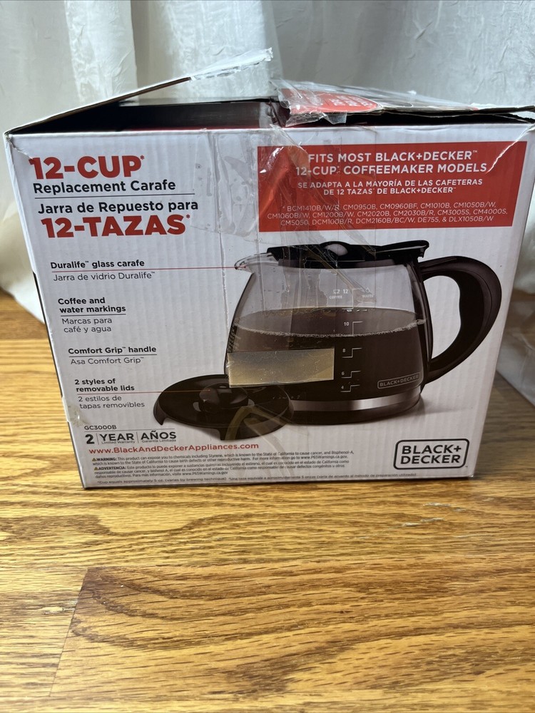 Black + Decker GC3000B Replacement Coffee Maker Glass Carafe 12 Cup New in Box. Shipped with USPS Ground Advantage.