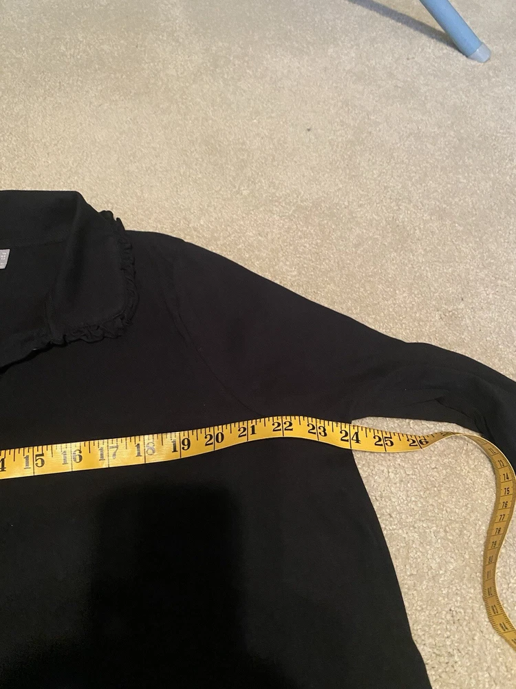 CUTE!! Black dress, long sleeves, button front, shirt style dress, cute colllar, sleeves bell out a little at the bottom. Ladies size 16.