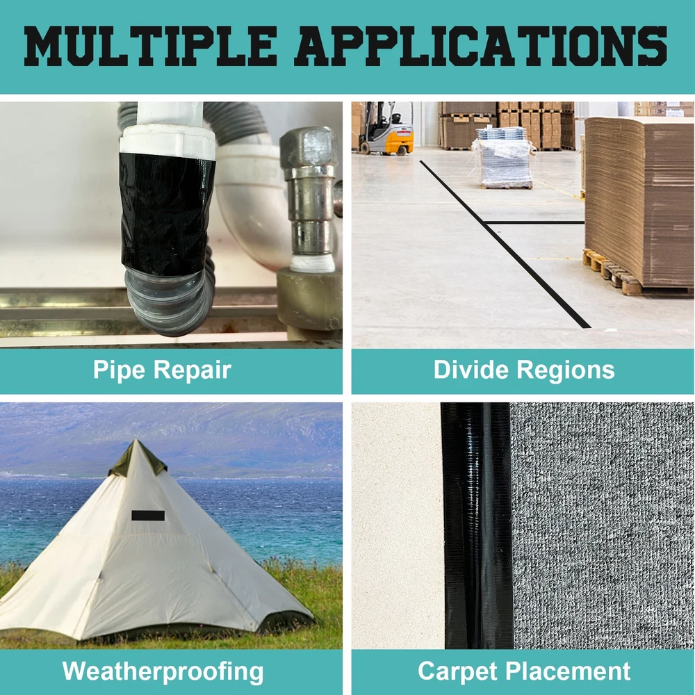 This heavy-duty black duct tape from CyantSolutions is perfect for a variety of applications. With a width of 2 inches and a length of 30 yards per roll, this tape is ideal for taping, sealing, and bonding materials. It is also waterproof and rated IP65, ensuring that it can withstand exposure to water without breaking down. It is suitable for both personal and professional use, and is a must-have for anyone who wants a reliable and versatile adhesive tape. Whether you're working on a DIY project or need a reliable sealant for your business, this black duct tape is the perfect choice. Super Thick and Heavy-Duty: The CyantSolutions black 2in x 30yd duct tape is flexible, durable and easy to use. This tape is perfect for professional and recreational repair needs, you can use it both for indoor and outdoor projects. Weatherproof and Super Strong Adhesion: This gray duct tape has excellent adhesion and can firmly attach tovarious items. Also, the duct tape has good water, moisture, and corrosion resistance and issuitable for different environments. Easy to Use and Tear: Although this heavy-duty duct tape is very adhesive, you can tear straightwithout stretching it out of shape. When you need to find heavy-duty tape that is super sticky buthas no residue, CyantSolutions duct tape will be your best choice! Daily Must Have Item: This duct tape is a must have tape for your daily jobs, it can be used as bundling tape, packaging tape, organizing tape, repair tape and almost every job you do in daily basis. Environmentally Friendly, Safe, & Reliable: The material is environmentally safe and freefrom harmful substances. In various scenarios that require bonding and fixation, this tape canprovide a safe and reliable solution, making your work more secure and reassuring