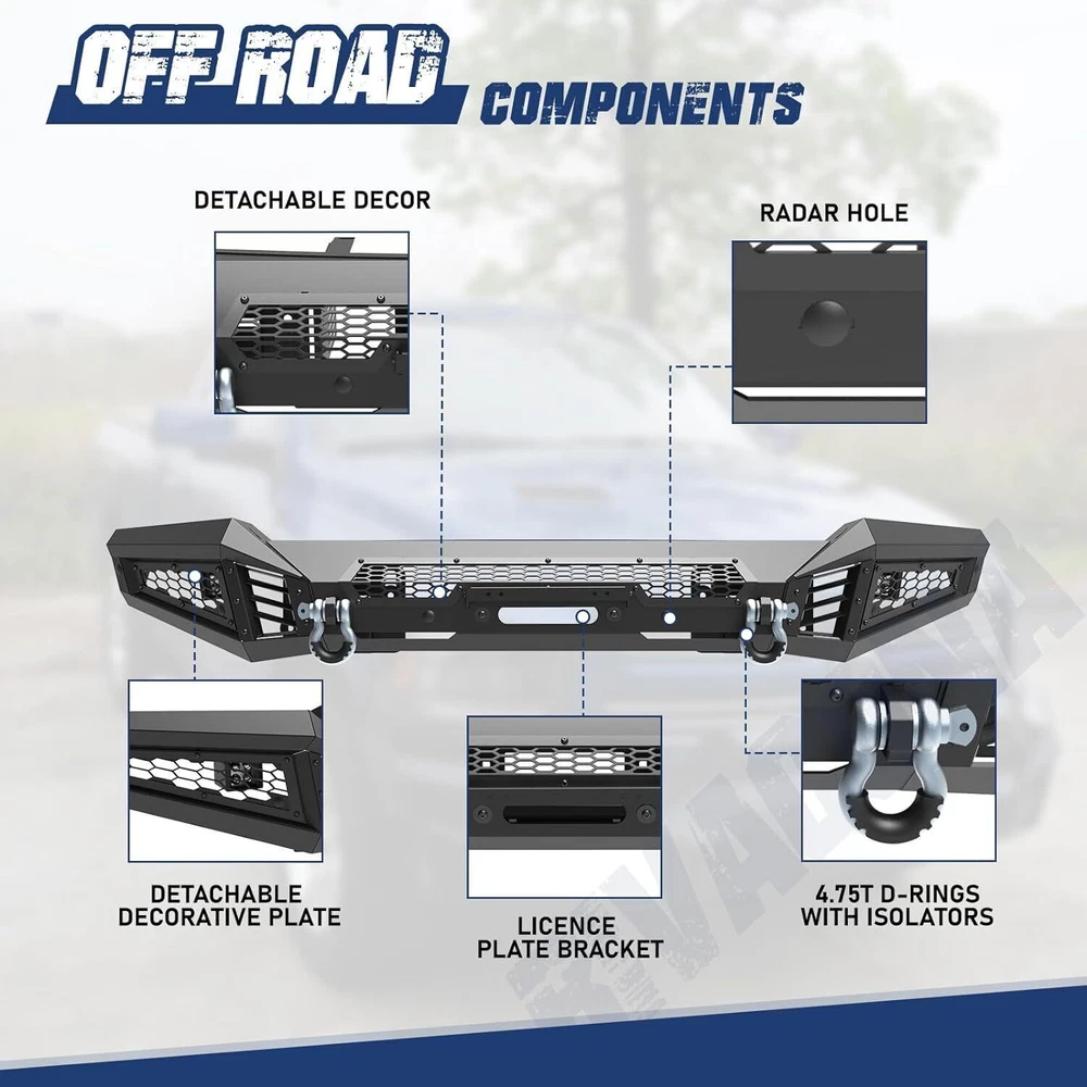 Head Lights Tail Lights Fog Lights Turn Signal Bumper Fender Flare Inner Fender Hubcaps Refrigerator Other Items for sale Head Lights Tail Lights Fog Lights Turn Signal Bumper Fender Flare Inner Fender Liners Portable Refrigerator May you Like LED Tail Lights Brake Rear Lamps Pair for 2016-2021 Toyota Tacoma - Clear Lens 159.99 USD LED Tail Lights Rear Lamps For 2016-2021 Toyota Tacoma Black Smoke Lens Pair L+R 196.02 USD LED DRL Tail Lights for 2016-2023 Toyota Tacoma Turn Signal Black Clear Pair 196.02 USD LED Tail Lights Rear Lamps for 2016-2021 Toyota Tacoma Chrome Red Lens Pair 196.02 USD Black Front Bumper For 2018-2020 Ford F150 Heavy Steel w/LED Pod Lights Winch Plate : https://www.ebay.com/itm/405192049582 Specifications: Material :Q235A Type: Heavy Duty Bumper Placement on Vehicle: Front Attachment Type: Bolt-on Direct replacement Surface Finish: Black Anti Rust Powder Coated Steel Premium quality aftermarket product Free 60 days return 1 years warranty Size: Mid-Width Front Bumper: Product Dimensions: 44.5 x 10.5 x 9.1 inch Package Dimensions: 48 x 13.2 x 9.4 inch Product Weight: 57 lbs Side Wing: Product Dimensions: 22.1 x 24 x 11.3 inch Package Dimensions: 34.2 x 21.1 x 10.2 inch Product Weight: 39.5 lbs Features: Mid-Width Front Bumper: Decorative Bezel--- Allows DIY colour spraying Flip-up Licence Plate Mounting Bracket--- Flip-up Licence Plate Mounting Bracket is include Shackle Mounting Brackets & Shackles--- Shackles are included Winch Cable Guide Mouting Hole--- Winch Rope Cable Lead Guide is not include Light Bar Mounting Bracket--- Can be installed light bar up to 30 inches, Light is not included Side Wings: Wing Guard Trim Blocks Shark Gill-like Decorative Panels:Allows DIY colour spraying Honeycomb decorative mesh panels:Allows DIY colour spraying Pod Light Mounting Bracket:Accept 2 3" or 4" Pods Light on Each Side(include 2 x 4" Pods Lights) Fitment: For 2018-2020 Ford F-150(Exclude Raptor) Package Includes: 1 × Mid-Width Front Bumper (w/2 x D Shackles) 2 × Full-Width Side Wings (w/2 x 4" Pods Lights) Mounting Hardware Kit Note:Two packages are shipped, and installation instructions are attached. If you have any questions, please contact us. We provide high-quality and fast pre-sales and after-sales services. Payment Shipping Return About us Contact us Payment Appreciated for the prompt payment, Contact us if bid by mistake, system open unpaid item automatically. Payment must be complete within 3 days from the date you purchase or after the end of auction. Items unpaid within 3 days of the auction end will be forfeited. We reserve the right of cancel the order and re-selling the items. Shipping All shipment will ship by UPS or USPS . All items will be ship within 1 working days , and we will ship out all orders as soon as possible after payment verified, please allow up to 1-4 business days for delivery. CANADA & International customers please note: your government might charge a duty tax (brokerage fees). We do not responsible for any custom duty or import tax. Why Choose the US Stock? 1. Us Local Shipping, No Extra Customs Cost to the US. 2. Fast Delivery: 1-4 Working days Delivery. 3. Best After-Sales Service!!! Return The buyer is responsible for all return shipping including a result of customer error or defective item. 1) If you received an incorrect, damaged, defective, or item not as described, contact us for full refund or replacement on our cost. 2) If you want to return the item, please contact us within 60 days after package received. Return products must also be in its original condition: including box, packaging and all other accessories. About us We are the best auto parts, we have been pursuing excellence, continuous exploration as the slogan, let customer satisfaction is our purpose! We adhere to the United States local delivery, one year warranty! Welcome! Contact us How Should You Contact us? Please Read The Item Description And See if The item Fits Your Vehicle Exactly. If You Found Any questions, Feel Free to email us by "Ask a question" Our Office Hours Are Monday - Friday 8:00am - 5:00pm PST / 11:00am - 8:000pm ET, We Do Not Answer Any E-Mails On Weekend, And We Will Reply All E-Mails In The Order It Was Receive. All E-Mail Take Us Around 24 Hours To Respond To Any E-Mail. We Are Close During The Weekends And We Do Not Answer Any E-Mails During That Time.