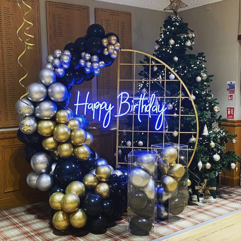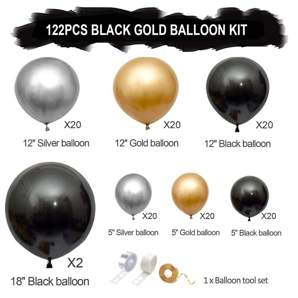 Black Gold and Silver Balloon Garland Kit - 122Pcs Black Gold Party Decorations 12Inch 5Inch 18Inch Metallic Chrome Gold Silver Latex Black Balloon Arch for Graduation Birthday Anniversary Supplies PERFECT DECOR - Black gold silver balloon party decoration is a popular party trend in recent years, so fresh and clean! And we offer balloons of many different sizes help the balloon wreaths or arches look fuller and more organic. Using our DIY balloon arch garland kit, play your creativity, which will make you have a unique and amazing party! PREMIUM VALUE PACK - This silver balloon garland kit include 122pcs balloons. Chrome silver balloons (5inch/20pcs, 12inch/20pcs) chrome gold balloons (5inch/20pcs, 12inch/20pcs) latex black balloons (5inch/20pcs, 12inch/20pcs,18inch/2pcs), 1 roll balloon garland strip, 1 roll ribbon, 1 roll glue dot. One pack meet all you need! 100% HIGH-QUALITY MATERIALS - Our party balloons are made of natural latex. Non-toxic, thick and durable, not easy to burst or leak, different from ordinary balloons, fuller color, and safe for children. We have tested it, it is not easy to explode, and can be kept in the state for 5-7 days. EASY TO ASSEMBLE - The black gold silver balloon garland kit comes with three tools including ribbon, strip tape and glue dots, which help you to make beautiful balloon arch more easily and quickly. With the help of these tools, you will save time. It will be a funny craft to DIY with your family or friends. WIDE APPLICATION - This black gold balloon arch is perfect for any event, such as graduations, engagements, weddings, anniversaries, baby showers, corporate events, photo shoots and so on. Decorate any party indoor or outdoor as a photo booth backdrop and create lasting memories. PERFECT DECOR - Black gold silver balloon party decoration is a popular party trend in recent years, so fresh and clean! And we offer balloons of many different sizes help the balloon wreaths or arches look fuller and more organic. Using our DIY balloon arch garland kit, play your creativity, which will make you have a unique and amazing party! PREMIUM VALUE PACK - This silver balloon garland kit include 122pcs balloons. Chrome silver balloons (5inch/20pcs, 12inch/20pcs) chrome gold balloons (5inch/20pcs, 12inch/20pcs) latex black balloons (5inch/20pcs, 12inch/20pcs,18inch/2pcs), 1 roll balloon garland strip, 1 roll ribbon, 1 roll glue dot. One pack meet all you need! 100% HIGH-QUALITY MATERIALS - Our party balloons are made of natural latex. Non-toxic, thick and durable, not easy to burst or leak, different from ordinary balloons, fuller color, and safe for children. We have tested it, it is not easy to explode, and can be kept in the state for 5-7 days. EASY TO ASSEMBLE - The black gold silver balloon garland kit comes with three tools including ribbon, strip tape and glue dots, which help you to make beautiful balloon arch more easily and quickly. With the help of these tools, you will save time. It will be a funny craft to DIY with your family or friends. WIDE APPLICATION - This black gold balloon arch is perfect for any event, such as graduations, engagements, weddings, anniversaries, baby showers, corporate events, photo shoots and so on. Decorate any party indoor or outdoor as a photo booth backdrop and create lasting memories. Shipping from the USA All of our products are shipped from the USA, ensuring quick delivery to your destination. Payment We offer the following payment methods: PayPal, credit card, bank transfer, and eBay's secure payment system. Free Shipping & Free Returns Shipping within the USA is FREE. Additionally, any return is absolutely free for you. Risk-Free Purchase You have the option to return an item within 30 days without any justification. We cover the return shipping costs! Fast Shipping We ship immediately upon receipt of payment. Generally, the package is delivered within 2-3 days in the USA. If it takes longer, we will contact you. Quality and Costs Made in Europe, USA, China No customs fees or additional charges Total satisfaction guarantee Invoice with declared VAT available upon request in .pdf format Feedback Your feedback is very important to us. After you pay for your purchase, you will automatically receive positive feedback from us.