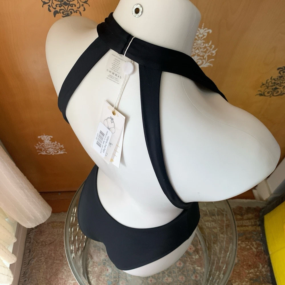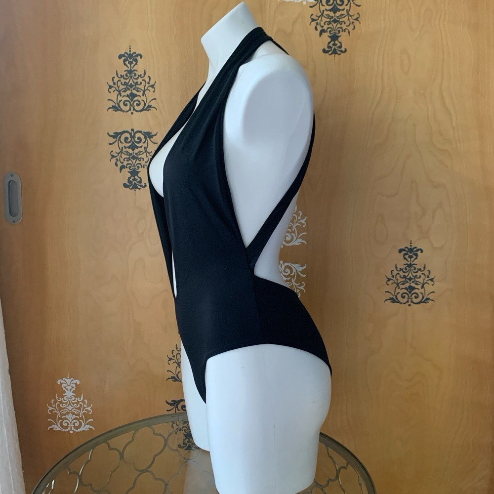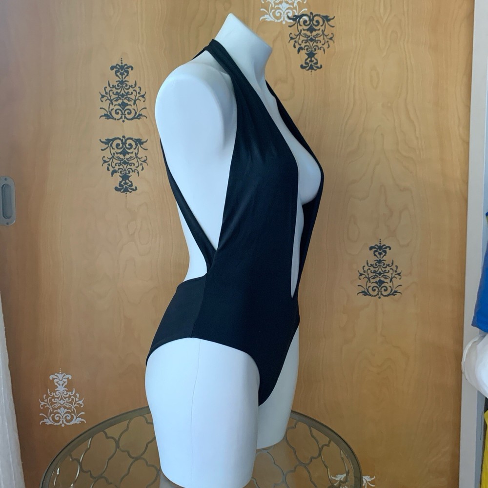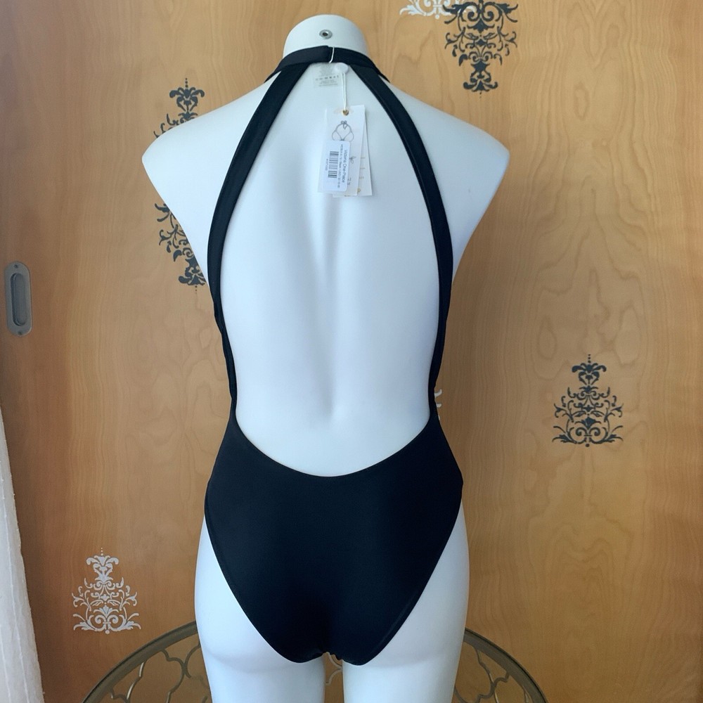 NWT Black Halter Neck Plunge One Piece Cut Out Swimsuit Black Small Condition: 10/10. No Stains/Rips/Tears. NWT! Price tag/sticker still on! Original price tag: $115 USD The Victoria plunge one-piece swimsuit is a daring open back design. Contouring over the hip and with cheeky coverage, exuding elegance. DETAILS: Deep plunge front Open back Seamless SIZE & FIT: True to size Model in picture is 5"7 wearing size S / Mannequin is a size S US: 4-6 EU: 36-38 AU: 8-10 Inches: Bust: 31-34 Cup Size: A-B Waist: 25-27 Hips: 35-37 MATERIALS: Content: 78% recycled polyamide, 22% elastane