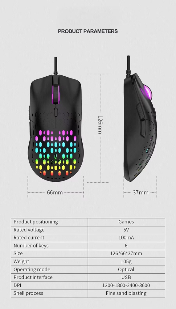 The Black Honeycomb Mouse is a sleek and high-performance gaming mouse designed for ultimate precision and comfort. With a wired USB connectivity, this mouse features 6 programmable buttons for customizable gameplay. Its stylish black colour adds a touch of sophistication to your gaming setup. Perfect for gamers who demand speed and accuracy in their gameplay, this mouse is a must-have for any serious gamer or computer enthusiast. Upgrade your gaming experience with the Black Honeycomb Mouse today.