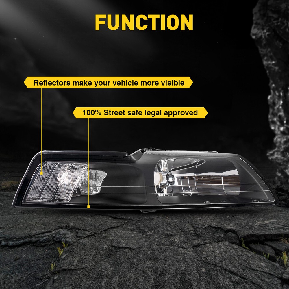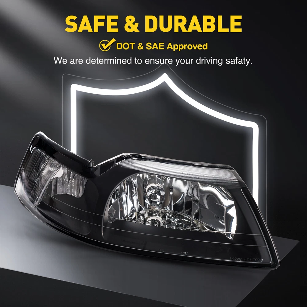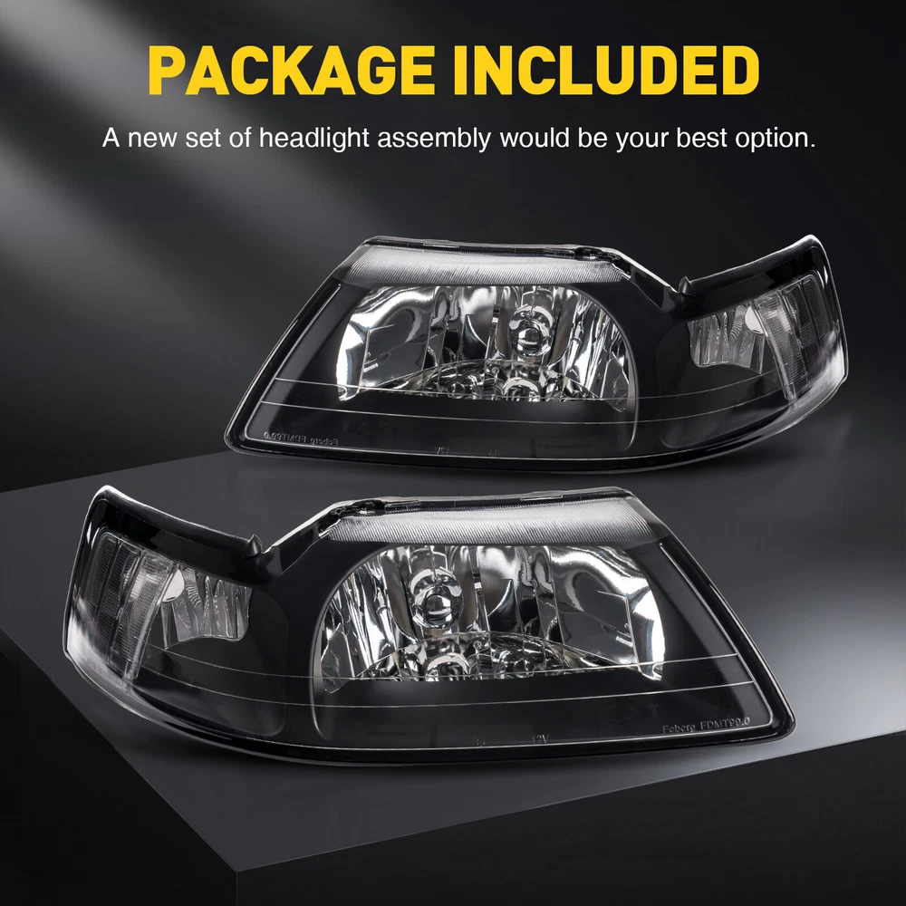 DESCRIPTION PAYMENT SHIPPING RETURN POLICY CONTACT US BLACK HOUSING CLEAR CORNER HEADLIGHTS FOR FORD MUSTANG 1999-2004 GT/COBRA EURO Features: These direct aftermarket replacement headlight assemblies are 100% OE standard, produced by suppliers from the automotive OEM market and are SAE/DOT approved. Please note that bulbs are not included KAC replacement headlight assemblies exactly match the specifications of the original manufacturer's design and no modification is needed. Wiring, switch and screws not included The beam level can be adjusted with adjusters. Made with the highest grade components for premium reliability and performance, offers enhanced visibility and meets all relevant safety standards Clear lens for superb clarity, IP65-rated water-resistant and durable to withstand all weather conditions, with vent holes in the housing to avoid moisture and fogging problems Product Description Designed for: 1999-2004 For ford Mustang Lens color: Clear headlight/Amber side marker Part replaces these OE numbers: YR3Z13008AA YR3Z13008BA Y3R3Z1300 Bulbs: Low Beam, High Beam(Bulbs NOT included) Specifics and Features: Plug-n-play operation, Direct bolt-on OE fitment or replacement for the stock unit Comes with a complete set of headlight (driver and passenger side) Brings a different appearance to veichle that great for show use or to replace old and worn headlights Requires no modificaion or drilling KAC original replacement headlight assemblies are made from premium components and manufactured to the highest standards. This replacement fog light assembly offers reliability and long-lasting performance. The clear lens offers enhanced road illumination and improved visibility. Item Specifics Brand KAC Type Bulb, Headlight Assembly, Lens, Reflector Manufacturer Part Number 1999 2000 2001 2002 2003 2004 FO2503160 Replacement Signal LH RH Interchange Part Number 99 00 01 02 03 04 YR3Z13008AA YR3Z13008BA Y3R3Z1300 FO2502160 Set Installation Guide Not Included; Professional installation is highly recommended Lighting Technology Halogen Fitment Type Direct Replacement Bulbs Included No Quantity 1 x Pair of Head Lights (Driver Side LH +, Passenger Side RH) Placement on Vehicle Front, Left, Right Headlight Style Factory Housing Color Black Lens Color Clear Features Factory Headlights, OE-Certified, SAE-Certified, Sealed Assembly Assembly Type Composite Beam Type Low Beam, High Beam Notes Does Not Include Bulbs & Wiring - Reuse Your Own Factory Bulbs Specifics Replacement Headlights Compatible/Replacement For For 1999-2004 Ford Mustang Reflector Color Clear Payment Shipping Return Policy Contact Us About Warranty 1) we accepts all major credit cards via PayPal: MasterCard, Visa, American Express and Discover. 2) We will only ship to the confirmed PayPal shipping address given with the payment. Please make sure your PayPal and eBay address is correct. If not, please correct it before payment. Thank you. 3) If you want to ship to another address, please change your PayPal shipping address before you make payment. 4) To avoid initiating an unpaid item claim, please pay within 7 days. 5) Custom duties, taxes, or charges are not included in the cost you pay to us. We only ship this item to United States ! 1. We ship to your eBay address. Each package will be shipped by UPS or Fedex with tracking number. 2. Ship within 1 business day once payment completed. Orders placed on weekend will be shipped within 3 days. 4. Seriously promise: Refund or resend will be offered if item still not arrive in 7-10 business days. Just send us an email ,we will give you a satisfied solution as soon as possible. If you send us an e-mail, it will be answered within 48 hours during our working hours. Please feel free to contact us if you have any questions: Dear my friend,we appreciate your support.And our goal is service you well and give you a pleasant shopping time in our store. ✅Dear customer, when you want to return or exchange goods (Please contact us first, instead of directly initiating a dispute) 1: Contact the seller first 2: Send pictures: outer packaging&scanned labels&item itself&with complete accessories, etc necessary condition Rule A: The original packaging of the item is in an unused state. Rule B: The outer packaging must not have any damage. 3: Obtain return label 4: Delivered Projects - Payment Repayment ✅A 15% restocking and shelving fee will be charged for returns or exchanges that are not caused by the seller and are in good condition. Exchange will not charge restocking fees or shipping fees due to transportation errors ✅Priority In case of the following reasons, the freight will be borne by the buyer 1: Unexpected order 2: Find a better price 3: Change your mind 4: Buy more items/make mistakes/misread model information ✅Please note Missing accessories/quality issues/transportation damage, etc Please contact us first to obtain a good solution, rather than directly opening a return dispute. Thank you very much for your understanding. I hope we have a pleasant cooperation! Contact us if you have any question, Give us a chance to serve you, negative feedback could not solve anything, communication Please! ❎ (NO) Three stars is LOW star, NO 1,2,3 stars PLEASE! ✅(YES) Please give us Five-star! Have Question or Problem?? Step 1: Contact seller Step 2: Select the 1st topic: I have a question about using my item or I want to send the seller a message. NO others please! Step 3: Describe your question clearly; we will give you the best solution Please leave five stars positive feedback positive comment and Five-Stars. * We maintain a high standard of excellence (5 star rating) and strive for 100% customer satisfaction! * Feedback is very important to us. * We would like you to contact us immediately before giving us neutral or negative feedback so that we can address your concerns to our satisfaction. * If we don't understand these problems, we won't be able to solve them! * After understanding the