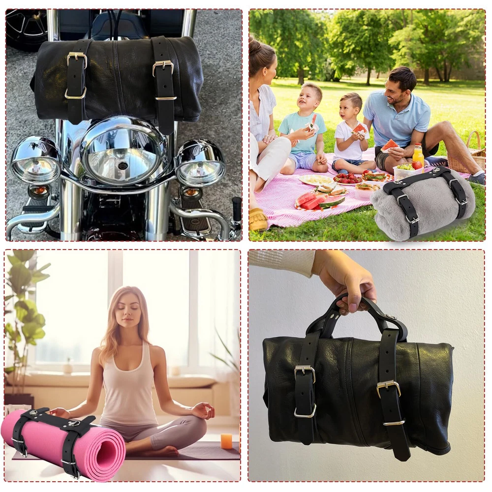 【Premium Material】This Motorcycle Blanket Holder is made up of durable heavy-duty leather. The thickness of belt is 0.5cm. The metal clasps make the belt stronger. Lightweight and sturdy, suitable for long-term use. 【Adjustable Length】There are equidistant holes on the belt, which can be adjusted freely according to the size of the goods, so as to save space and maximize the utilization of space! This bandage work well with mats of all sizes. 【Multi Purpose】This Blanket Strap is suitable for many scenes, such as RV travel straps, camping blanket straps, picnics bedroll straps, motorcycle riding roll strap, yoga fitness and so on. Can be used as a variety of blanket carry strap. 【Quality Service】Before and after the purchase, if you have any questions, you can feel free to us, We will reply within 24 hours and help you solve the problem.