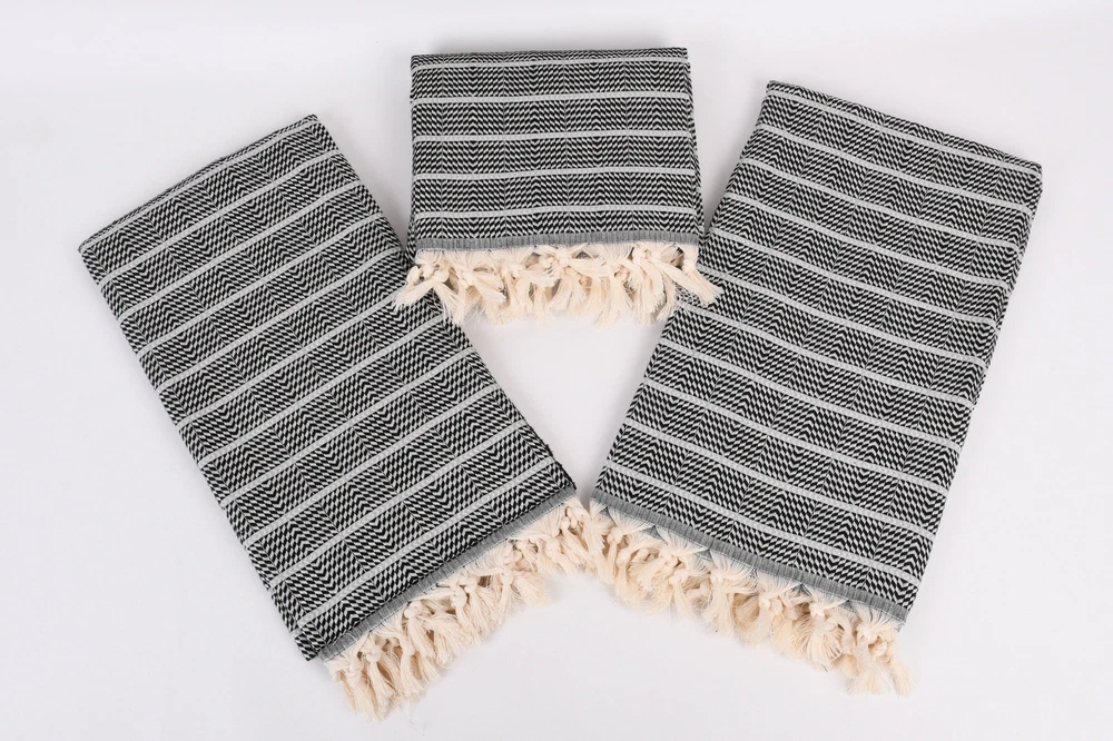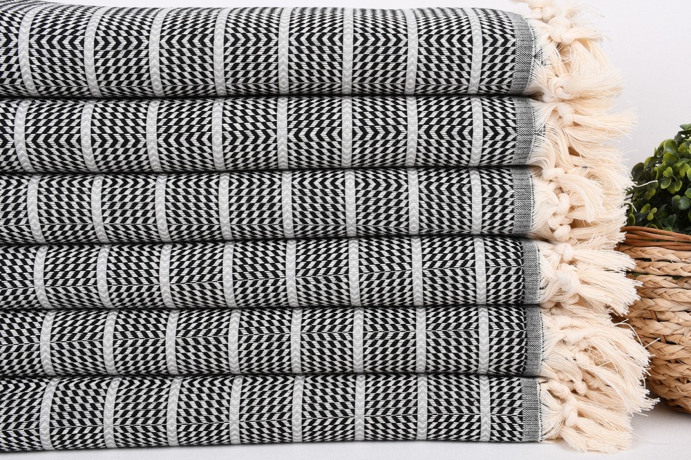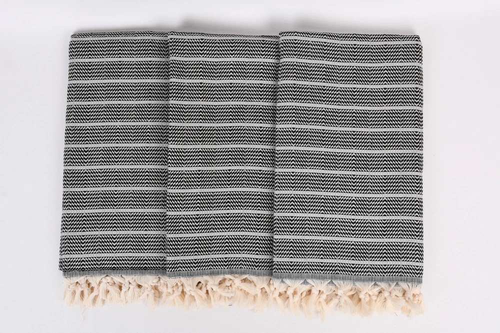 Type: Beach Towel Color: Black-Light Gray Material: 100% Cotton Size: 40"X71" Softness: Soft Item Length: 40" Pattern: Geometric Room: Any Room Theme: Beach Brand: Turkish Department: Adults Item Thickness: Medium Item Width: 71"