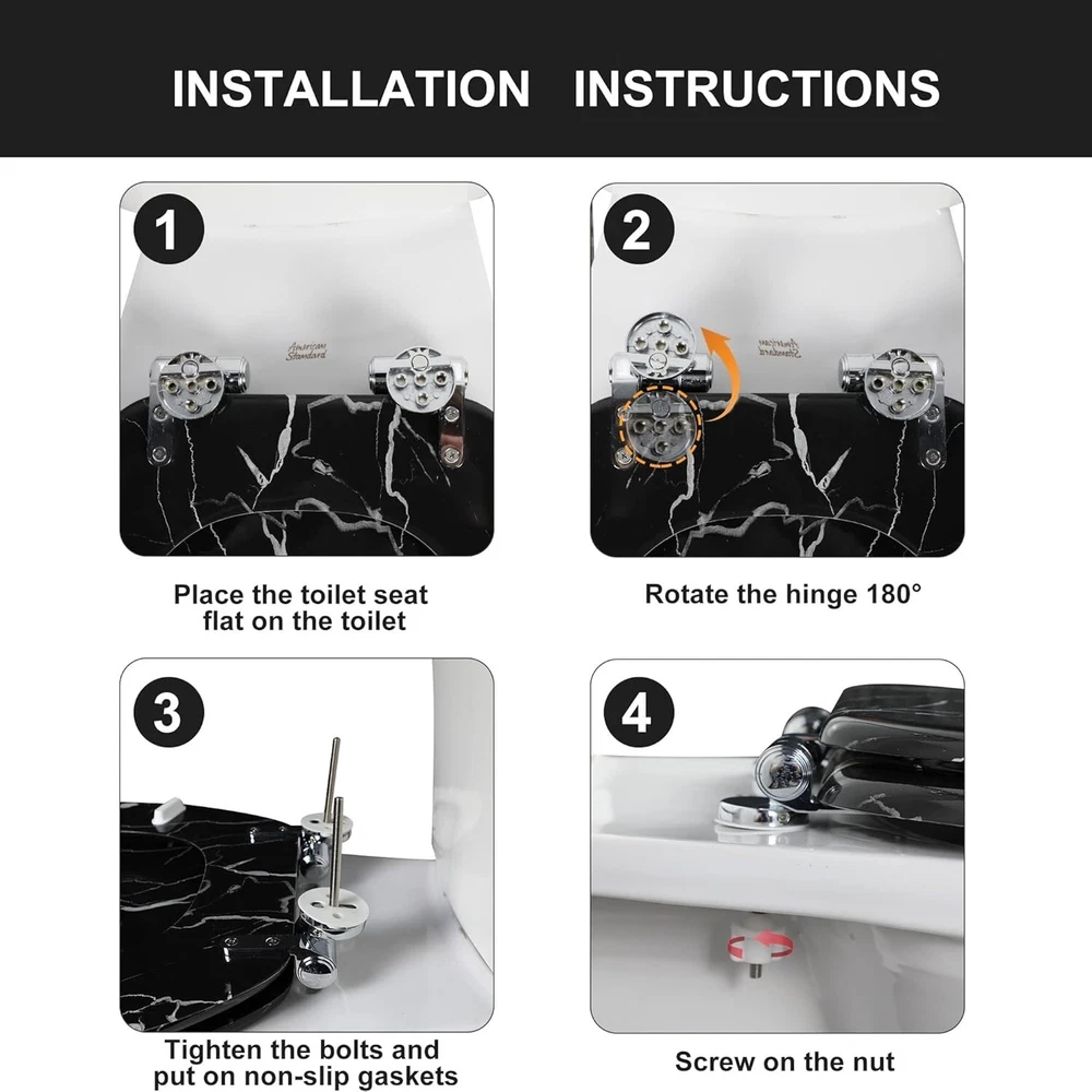 Quiet Close Elongated Toilet Seat in Black Marble - Effortless Cleaning & Style ‹ › ‹ › ‹ › ‹ › ‹ › ‹ › ‹ › ‹ › ‹ › ‹ › Quiet Close Elongated Toilet Seat in Black Marble Effortless Cleaning & Style Features: Elongated Size: Designed to fit all American toilet brands including Crane, Universal Rundle, Eljer, Delta, Bemis, Caroma, Gerber, and more. Please measure your toilet bowl to ensure the perfect fit. Quick Release Hinges: Easily remove the toilet seat for effortless cleaning or replacement. No Slamming: The toilet seat closes slowly and quietly, ensuring the safety of little fingers while preventing disruptive noise. Quick Installation: Our upgraded mounting accessories guarantee a secure fit without professional skills or extra tools. Complete installation in just 3 minutes using the included accessories. Installation Tips: Ensure the discs are rotated to 180° before installation, and utilize spare holes if a longer size is needed. We provide 24-hour support if you have any questions or experience missing hardware. Benefits: Stylish and modern black marble design to elevate your bathroom décor. Durable virgin pulp wood construction ensures longevity and environmental responsibility. Efficient cleaning process thanks to the quick release mechanism. Family-friendly safety features to prevent slamming and potential injuries. Peace of mind with responsive customer support for any installation queries. Why Choose Our Quiet Close Elongated Toilet Seat? Transform your bathroom experience with our elegant Quiet Close Elongated Toilet Seat in Black Marble. Combining functionality with sophisticated design, this toilet seat not only enhances the aesthetic of your space but also provides a safer, quieter, and easily maintainable solution for your family bathroom. Choose a stylish upgrade today and enjoy the blend of modern elegance and practical features that set your bathroom apart. Order now and indulge in the serenity of a perfectly appointed lavatory experience! Shipping Free & Fast Shipping - We offer free shipping to most of the USA with a normal delivery time of 3-7 days. However, due to the current situation, additional delivery time (up to 3 weeks) may be required for some items. Alternative Carriers - We may use alternative carriers (e.g. USPS, FedEx, UPS, etc.) to ensure your package arrives safely and on time. Due to the use of multiple carriers, we are unable to provide a tracking number automatically. Handling Time - Orders are processed and shipped within 1-2 business days of receiving cleared payment. Shipping Restrictions - Shipping to Alaska, Hawaii, Puerto Rico, Guam, and other US territories may incur shipping charges or delivery restrictions. Please contact us before ordering, or your order can be refunded/cancelled. State Restrictions - There may be restrictions based on your state of purchase. For example, certain items may not be shipped to California due to state regulations. Contact for Tracking Updates - If you require tracking updates or have any concerns about the delivery of your order, please feel free to contact us, and we will be happy to assist you. Return 30-Day Hassle-Free Returns - We want you to be completely satisfied with your purchase. If you are not, you can return the item within 30 days of receiving it for a full refund or exchange. Easy Return Process - To start a return, simply contact us and we will provide you with a prepaid return shipping label and detailed instructions. Restocking Fee - There are no restocking fees for returns. However, the buyer is responsible for return shipping costs if the return is not due to a seller's error. Refund Processing Time - Refunds will be processed within 5 business days of receiving the returned item in its original condition. Payment We accept all major credit cards, PayPal, and Apple Pay for your convenience. Your payment information is secure and encrypted to ensure a safe and seamless transaction. Please complete your payment within 3 days of purchase to avoid any delays in shipping. Feedback Your feedback is extremely important to us. We strive to provide the best products and customer service possible. If you are satisfied with your purchase, please take a moment to leave us a positive review. If you have any concerns or issues with your order, please contact us before leaving negative feedback. We are committed to resolving any problems and ensuring your satisfaction. Contact Us If you have any questions or concerns, please feel free to reach out to our customer support team. You can contact us through the eBay messaging system. We are available Monday to Friday, 9:00 am to 5:00 pm EST, and we will do our best to respond to your inquiry within 24 hours. Thank you for supporting our small family business! UPC: Not Set Item Diameter: 18.5" Item Diameter (Interior): 14.34" Seat Height: Not Set Unit Quantity: 1 Material: Wood,Molded Wood Features: Quick Release Hinge,Quiet Close,Easy Clean,Quick Installation Suitable For: Adult Room: Bathroom Compatible Brand: Not Set Compatible Model: Not Set Items Included: Toilet Seat Type: Toilet Seat Brand: Unbranded Shape: Elongated Bowl Shape: Oval Color: Black Marble Number in Pack: 1 Style: Modern Country/Region of Manufacture: Not Set Item Width (Interior): Not Set Item Height: Not Set Item Length: Not Set Item Width: Not Set Model: Not Set Labels & Certifications: Not Set MPN: Not Set Unit Type: lb