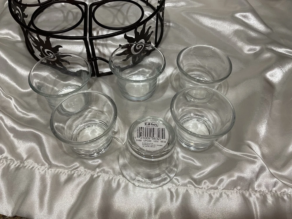 Add a touch of celestial charm to your outdoor patio with this elegant black metal candle holder. Its round design features a unique umbrella shape, adorned with six glass holders perfect for housing votive candles. The farmhouse style complements any patio table, creating a warm and inviting atmosphere for your gatherings. Crafted from durable metal and glass, this unbranded candle holder is a blend of functionality and decoration. The decorative features include a rustic finish that adds to its rustic appeal, making it an ideal choice for those who love to host dinners or late-night barbecues under the stars.