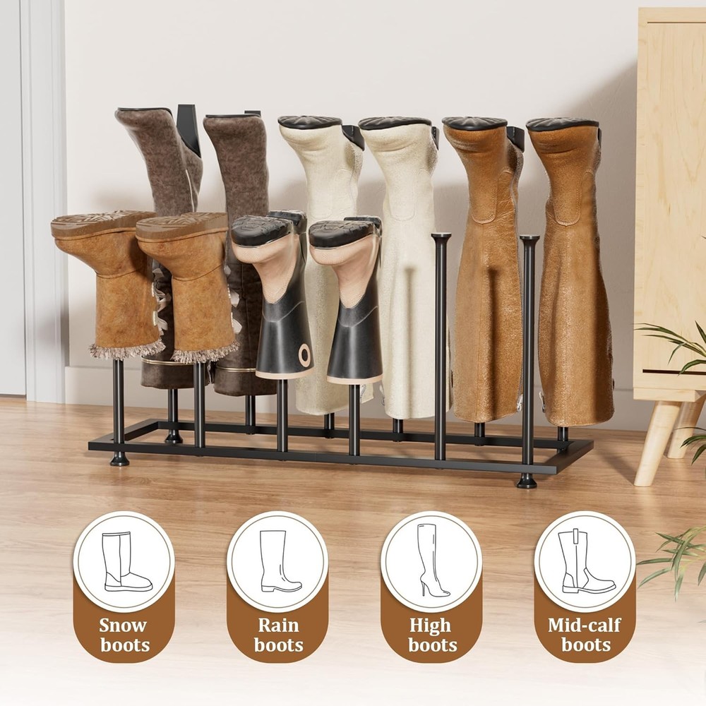 Absolutely love this boot rack! It keeps all my tall and mid-calf boots neatly organized and prevents them from getting creased—no more tangled piles. The adjustable feet make it super stable on any floor, and it saves so much space in my closet. Perfect for keeping my favorite boots in great shape!