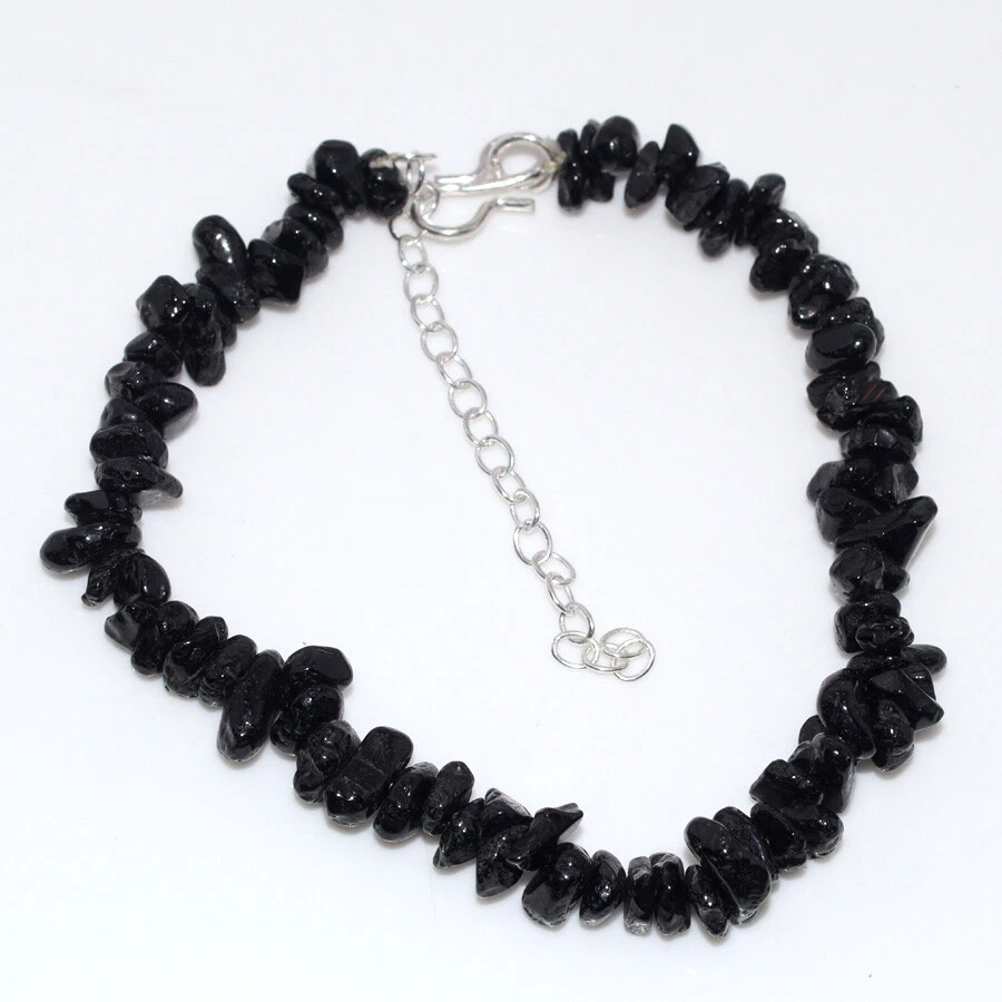 Black Onyx 925 Silver Plated Beaded Gemstone Bracelet 8-2" Gifts For Women JW