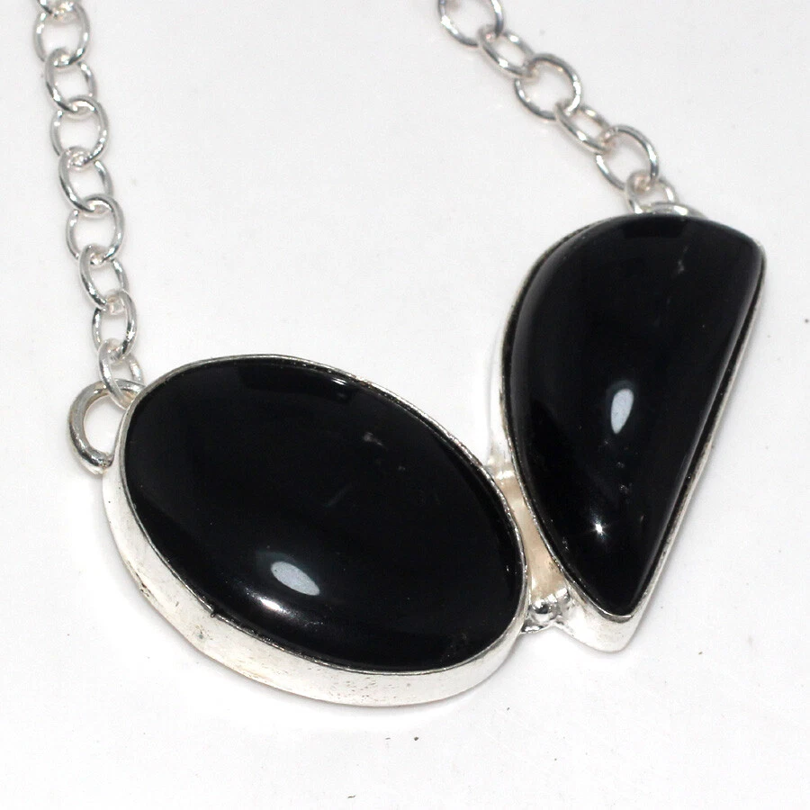 Black Onyx 925 Silver Plated Gemstone Handmade Necklace 16" Superb Gift JW