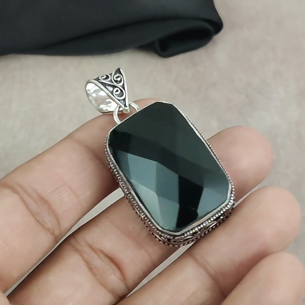 Total Carat Weight:10 carat and aboveCertification:N/AOccasion:Anniversary, Birthday, Christening, Christmas, Engagement, Father's Day, Graduation, Mother's Day, Valentine's Day, WeddingCountry of Origin:IndiaNecklace Length:5"Setting Style:BezelCut Grade:N/ATheme:Beauty, Bohemian, Ethnic, Halloween, Love, NatureBrand:HandmadePendant Shape:Same As PictureMetal:Sterling SilverDiamond Color Grade:N/AMain Stone Treatment:Not EnhancedMetal Purity:925Collection:HandmadeMaterial:GemstoneStyle:PendantChain Type:N/ABase Metal:Sterling SilverMain Stone:Black OnyxType:PendantFeatures:HandmadeDiamond Clarity Grade:N/AMain Stone Color:BlackNumber of Gemstones:1Main Stone Creation:NaturalCountry/Region of Manufacture:IndiaColor:SilverNumber of Diamonds:N/APendant/Locket Type:Same As PictureColored Diamond Intensity:N/AClosure:Same As PictureSecondary Stone:N/AMain Stone Shape:Emerald