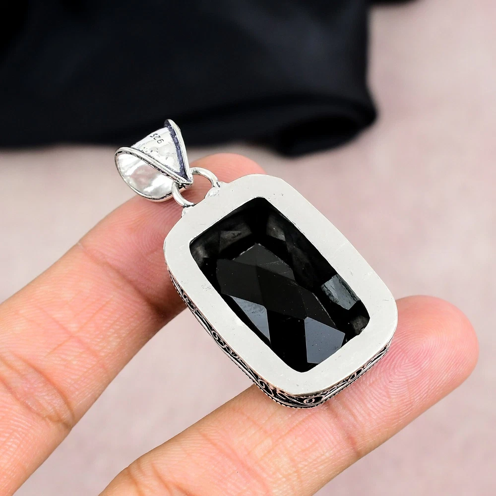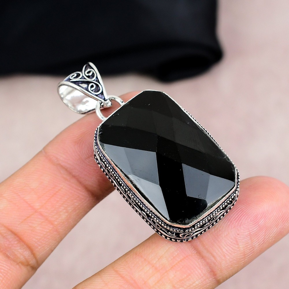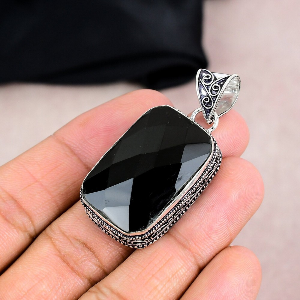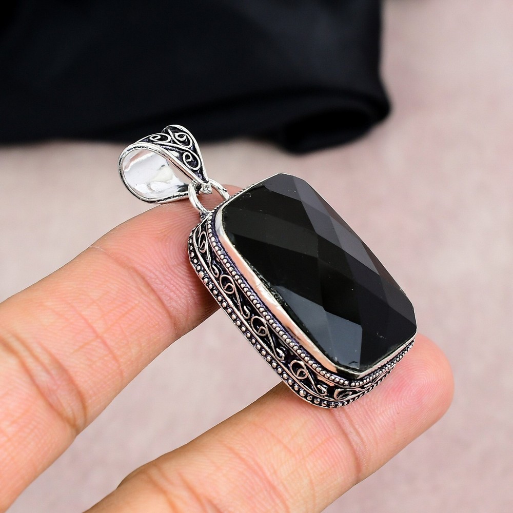 Black Onyx Gemstone Pendant in 925 Sterling Silver Handmade Jewelry Gift