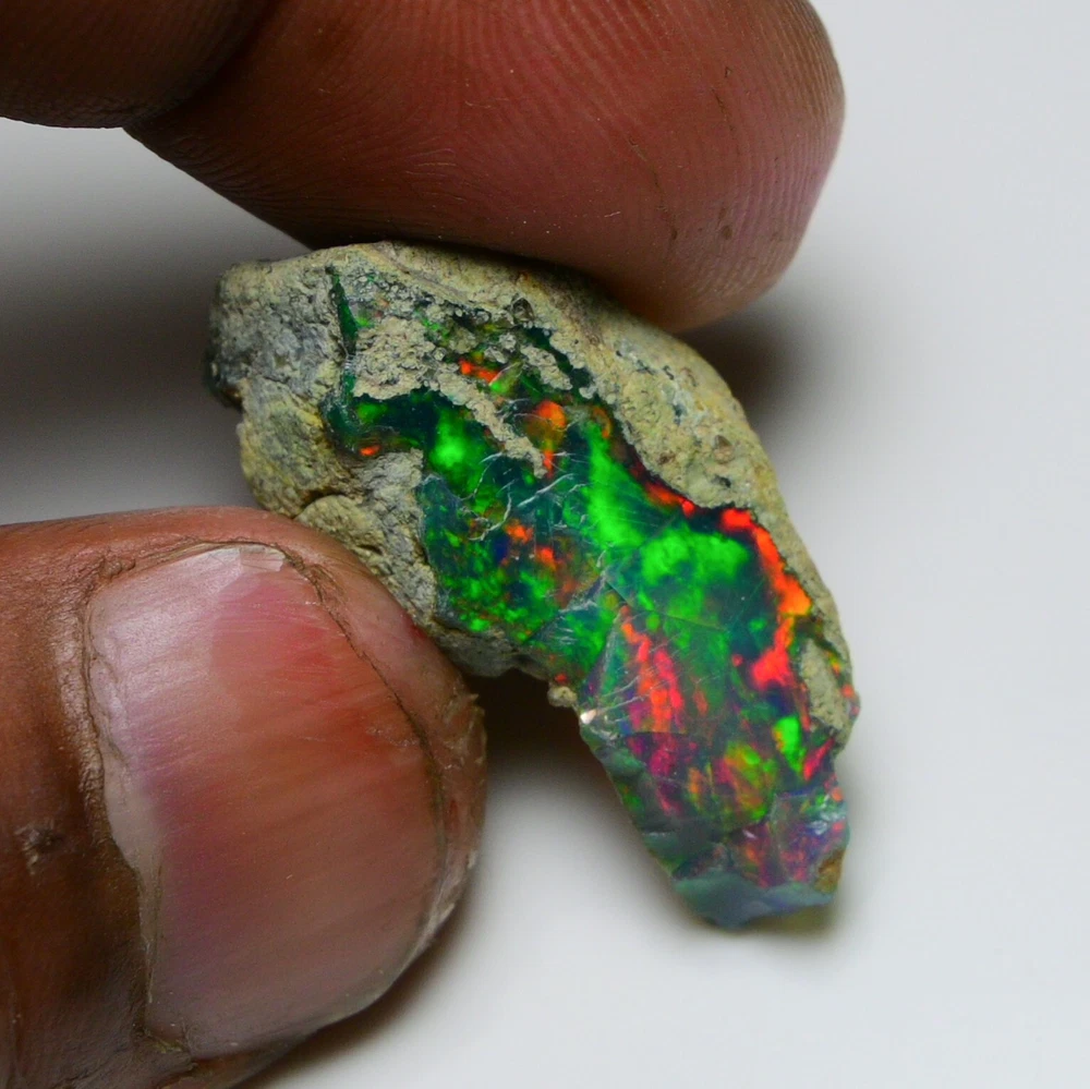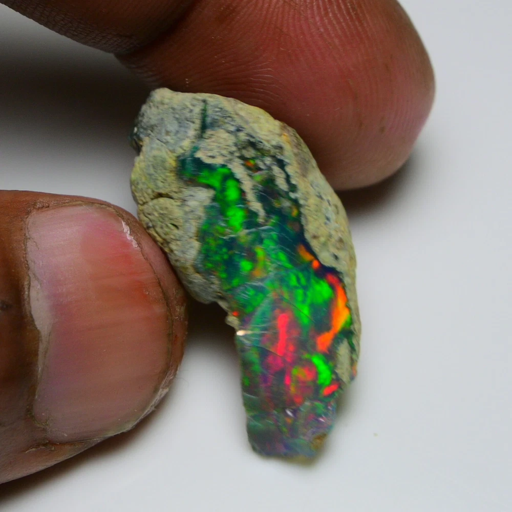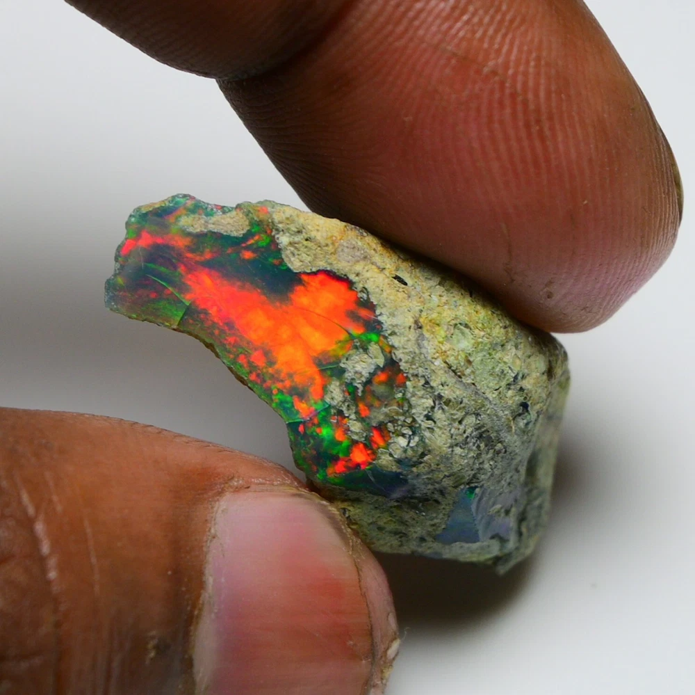 RAZAAN GEMS A PLACE TO BUY 100% NATURAL GEMSTONES, JEWELERY & MINERALS We are pleased that you have found us! We are based in the Jaipur, INDIA and have provided the world with quality gemstones since 1998. Our goal is for you to be 100% satisfied. Natural Ethiopian Black Opal Rough 19.80 CTS Top Quality Fire Opal Raw Untreated Gem Type Ethiopian Opal Color Play of Colors Shape Rough Size 31X15 mm Weight 19.80 ct Grade AAA Hardness 6.5 Luster Excellent Clarity Opaque Treatment Unheated / Untreated Origin Ethiopia RAZAAN GEMS We Only Sell Natural Gemstones You can ask for video if you want. Ready to be set or added to your collection. A very original piece ! Don't miss out !! They are taken with a digital camera under artificial light, not enhanced in any way and will never show the true brilliance as seen by human eyes. GUARANTEE: We are committed to your 100% satisfaction. If for any reason you are not satisfied with your gemstone purchase, you are entitled to a full credit or refund within 14 days of receipt. Shipping and handling fees are not refundable. Contact us We can be contacted at any time through eBay messages if you have any questions, comments or product requests. We will respond to you within 24 hours and do our best to help you out! We encourage our customers to contact us with any questions or concerns! We'd like to be sure you are completely satisfied with your purchase. Payment We accept Payment through PayPal only, Payment should be made within 2 days of purchase. Shipping Free shiping worldwide World Wide Shipping is Available Handling Time :- 1 Business Day Delivery Time :- 8-10 Business Days You will receive a Mail or Message from our side when your parcel has reached to Major destinations. Return Your satisfaction is our at most priority and goal. However, if for any reason you are not completely satisfied, you may return your order within 14 days from the date of shipment. return shipping will not be borne by us.