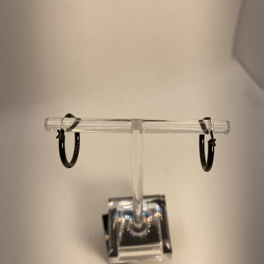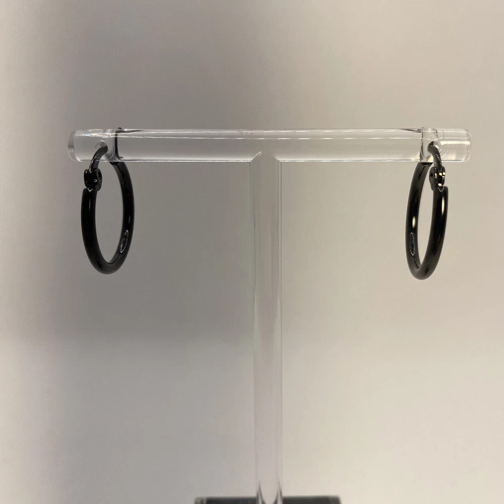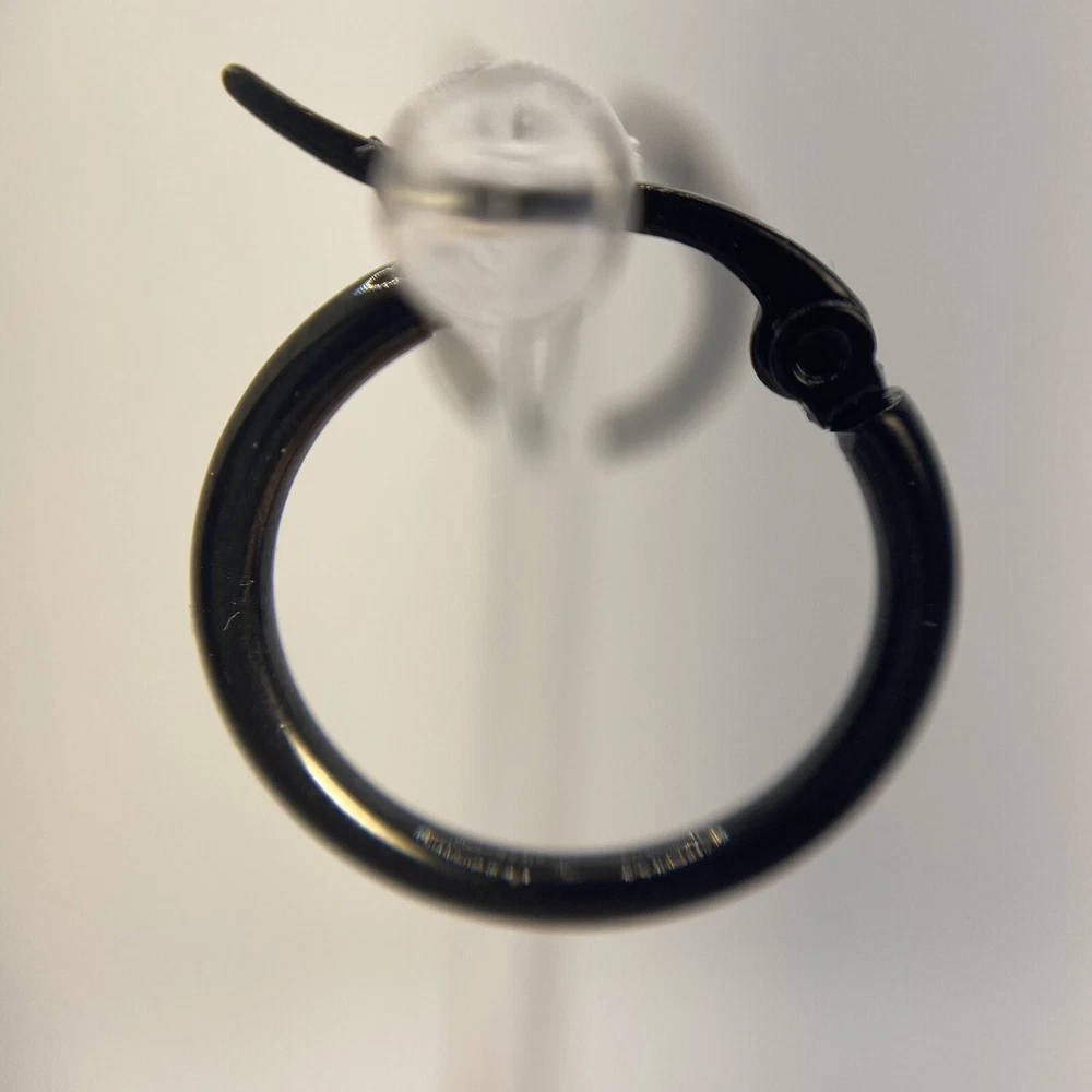 Black Plated Surgical Steel Hoop Earrings Latch Back Womens Teens Gothic Emo See photos for the actual item available. Feel free to contact me with any questions. Add a touch of elegance to your look with these black plated surgical steel hoop earrings. The earrings feature a secure lock back closure, making them perfect for any occasion from Mother's Day to Graduation. The 20mm diameter of the earrings ensures a comfortable fit for cartilage and lobe ear areas. These hoop earrings are nickel-free, making them ideal for those with sensitive skin. The round shape and black color of the earrings make them versatile to match with any outfit, be it a punk, biker, or gothic themed costume. These earrings are perfect as a gift for birthdays, Christmas, Halloween, or anniversaries. The earrings are made in Thailand with 316L surgical steel, making them a durable and long-lasting addition to your jewelry collection. Shop our store with confidence as we offer 30-day returns on all purchases. Additionally you can save money by making multiple purchases to take advantage of our discount shipping policy. You will pay the highest shipping cost for a single item in your cart and $3 for each additional item.