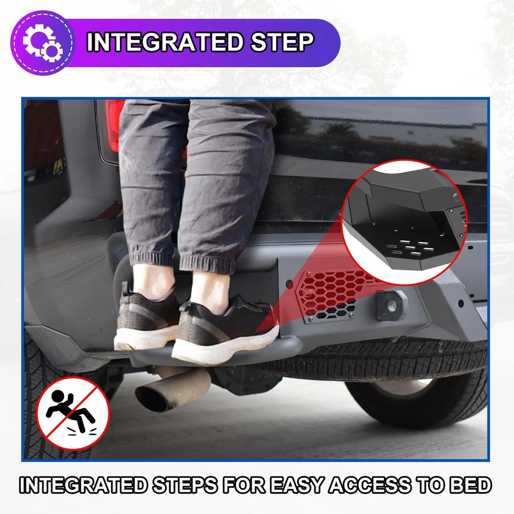This heavy-duty rear bumper is a game-changer for Chevy Silverado and GMC Sierra owners! The sleek black finish looks aggressive, while the built-in corner steps make loading and accessing the bed super convenient. Perfect for off-road adventures, it adds serious durability without sacrificing style. Installation was straightforward, and the fit is spot-on for 2007-2018 models. Love how it upgrades both function and appearance—total win!