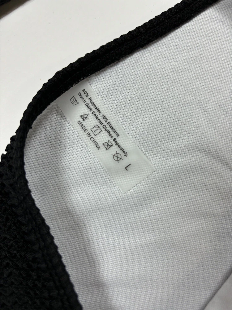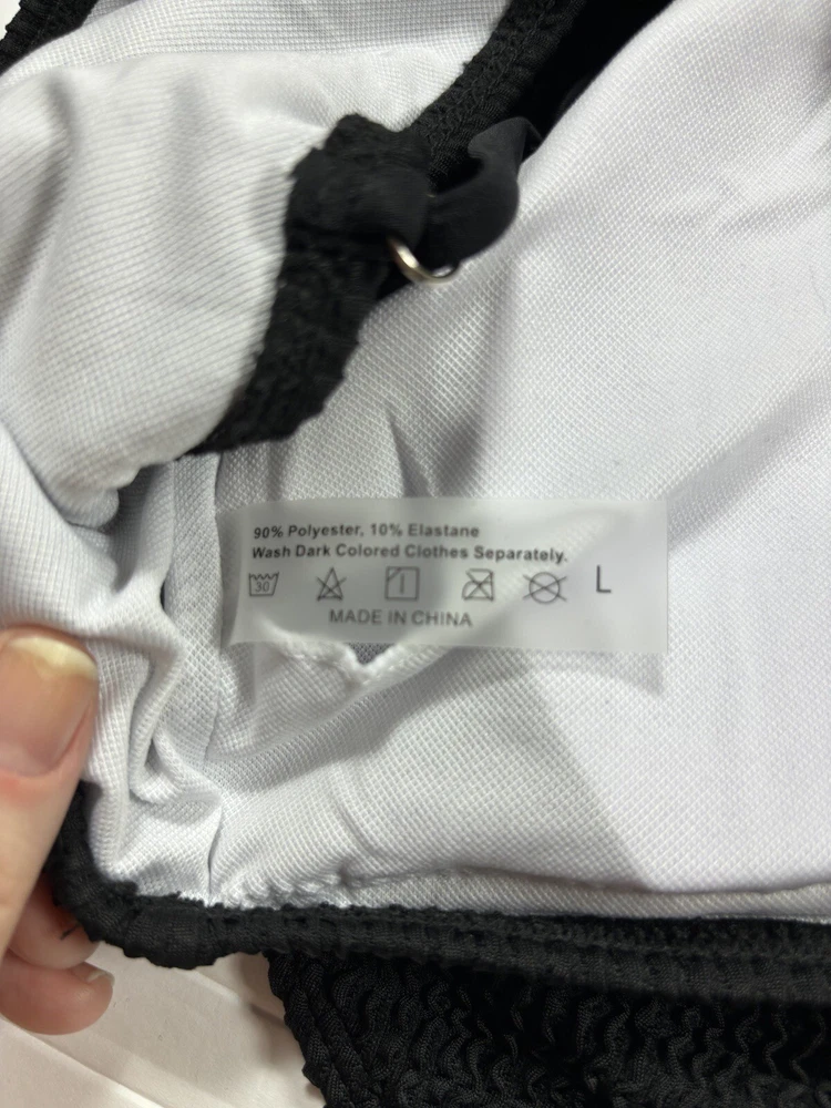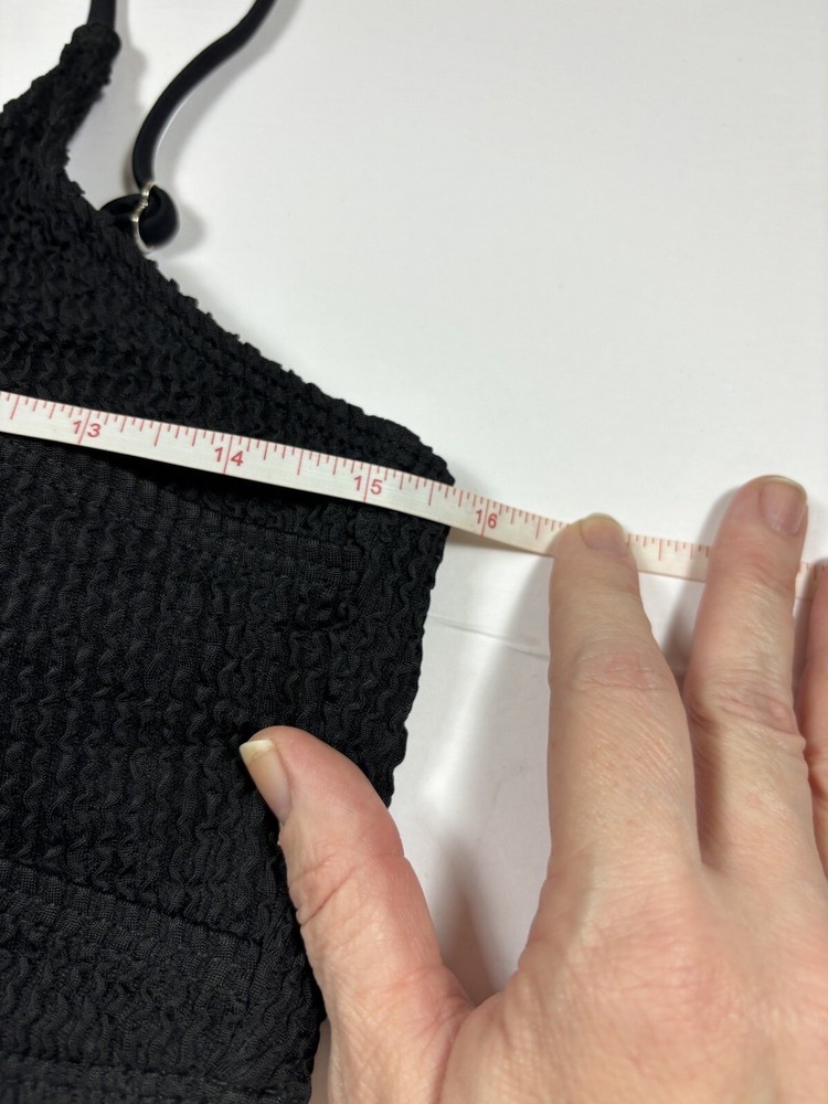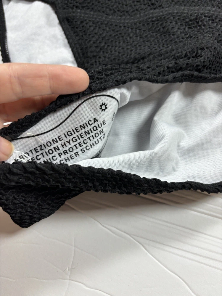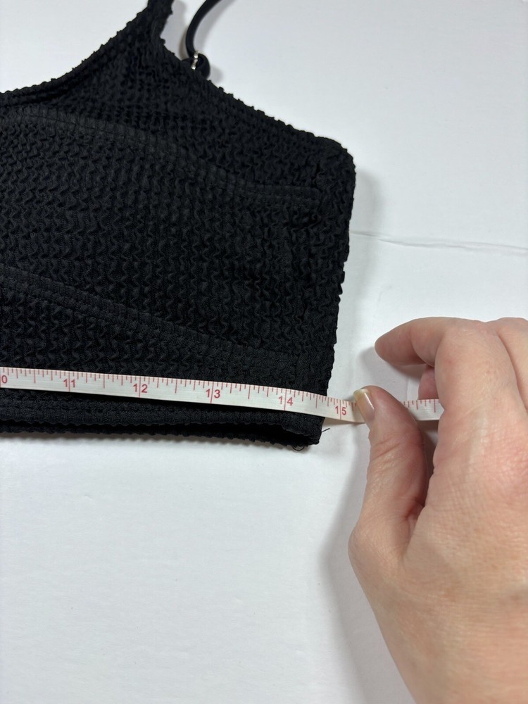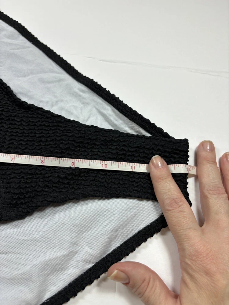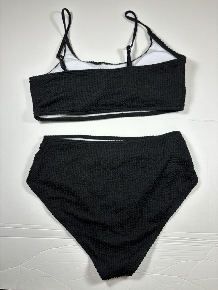 Black Bikini Seersucker Black Large Removable Pads Adjustable Straps High Cut Fabric Content - 90% polyester, 10% elastane Care Instructions - Machine wash, line dry See photos for condition - this is brand new, no flaws Size - See photos for measurements G10