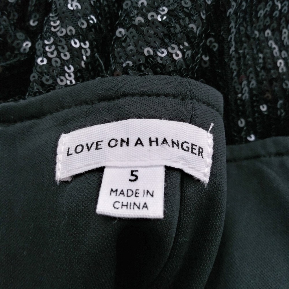 Love On A Hanger Black Sequin Mini Skirt Size 5 Sequin Mini length Lined 2 front cut outs for easy movement Back zipper gently worn approximate measurements waist across 14" length 16"