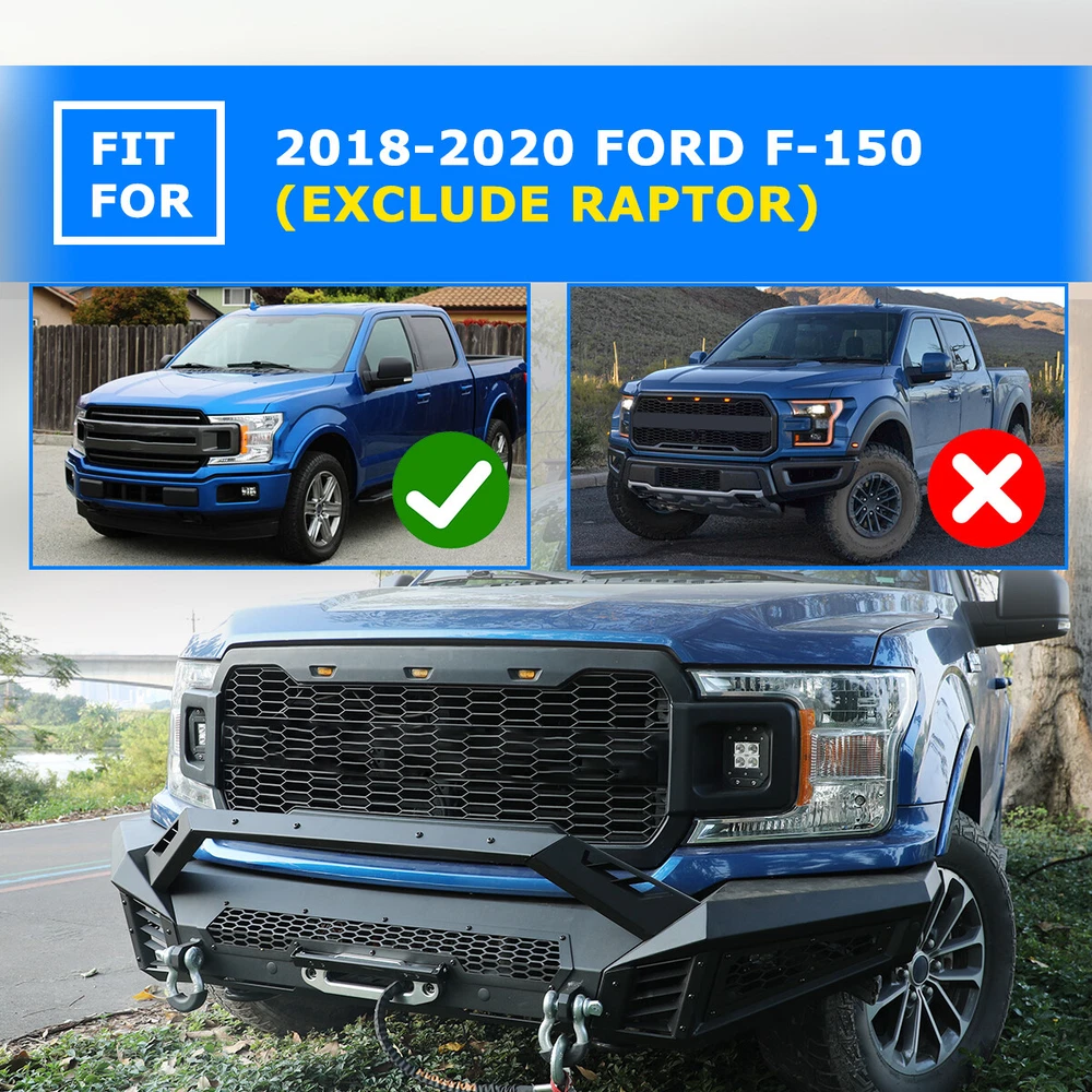 Black Steel Front Bumper w/LED Pod Lights+Shackles For 2018 2019 2020 Ford F-150 Features: 【Mounting Light Hole Position】 Specially designed for 2018-2020 Ford F-150 front bumper, protects your front grille.Modular design, can be DIY as you like. 【Premium material 】This Front Bumper is made of steel to provide excellent strength and durability, High-quality textured powder coating provides corrosion protection, multi-point welded to the sturdy bracket for strong bearing capacity. 【Easy to Bolt installation 】 Simply bolt directly to the optional modular front bumper, no drilling required.Excellent fitment and easy installation.To play a decorative and functional role. Fitments: Compatible with 2018-2020 Ford F-150 Specifications: Surface Finish: Black Anti Rust Powder Coated Steel Include: Mounting Hardware, Designed in the USA 360 days manufacturer warranty. 30-Day return policy. 【Mid-Width Front Bumper】 1. Allows DIY colour spraying 2. Works with Factory Parking Sensors,w/Park Distance Sensor Mounting Hole 3. W/Flip-up Licence Plate Mounting Bracket 4. W/Bumper Mounting Bracket 5. W/Light Bar Mounting Bracket,Can be installed light bar up to 30 inches 6.Product Size: 44.5 x 10.5 x 9.1 inch Weight: 57 lbs 【Full-Width Side Wings】 1. Wing Guard Trim Blocks 2. Park Distance Sensor Mounting Hole:1.Works with Factory Parking Sensors ;2.With dust plug when no sensor is installed 3. Shark Gill-like Decorative Panels:Allows DIY colour spraying 4. Honeycomb decorative mesh panels:Allows DIY colour spraying 5. Pod Light Mounting Bracket:Accept 2 3" or 4" Pods Light on Each Side(w/2*4" LED Pod Lights) 6.Product Size: 22.1 x 24 x 11.3 inch Weight: 39.5 lbs 【Bull Bar】 1. Shark Gill-like Decorative Panels 2. Light Bar Mounting Bracket/Pod Light Mounting Bracket:Can be installed light bar up to 30 inches or 2 pods light 3.Product Size: 48.3 x 7.6 x 7.6 inch Weight: 8.8 lbs Package Included Style:2 IN 1 1 * Mid-Width Front Bumper 2 * Full-Width Side Wings 2 * 4" LED Pod Lights 2 * D-Ring Shackles 1 * Set of Mounting Accessories Style:3 IN 1 1 * Mid-Width Front Bumper 2 * Full-Width Side Wings 1 * Bull Bar 2 * 4" LED Pod Lights 2 * D-Ring Shackles 1 * Set of Mounting Accessories Payment Delivery details Terms of sales About us Contact us Payment 👉 We accept PayPal (Recommended), credit card, VISA, Google Pay & Discover etc. 👉 Please submit your payment within 7 days after your purchase. 👉 If not, eBay will automatically open an Unpaid Item Dispute on our behalf if the item(s) are not paid within 7 days. Delivery details 👉 Please double check your delivery address and contact information. 👉 All items will be shipped within 1 business days after payment received. 👉 Tracking numbers will be easily accessible ASAP they are created and processed. Terms of sales 👉 Free 30 days Return, we will cover the return post fee. 👉 If a defective product was received, please do not hesitate to message us via eBay message. 👉 We will response in 24 hours in business to resolve the problem 👉 We stand behind our products. Items can be returned for exchange or full refund within 30 days from the date you receive. About us 👉 Wolfstorm has a huge warehouse and office located in the United States. 👉 All US domestic 48 states customers are able to benefit from the FREE SHIPPING services. 👉 Our experienced, professional customer service representatives offers prompt and courteous service. 👉 Best quality products, outstanding services and professional experience keep our customers. Contact us 👉 Please feel free to contact us if you have any problems. 👉 Emails will be replied within 24 hours in working days. 👉 After hours emails will be replied on the next business day. On Dec 12, 2024 at 23:58:27 PST, seller added the following information:
