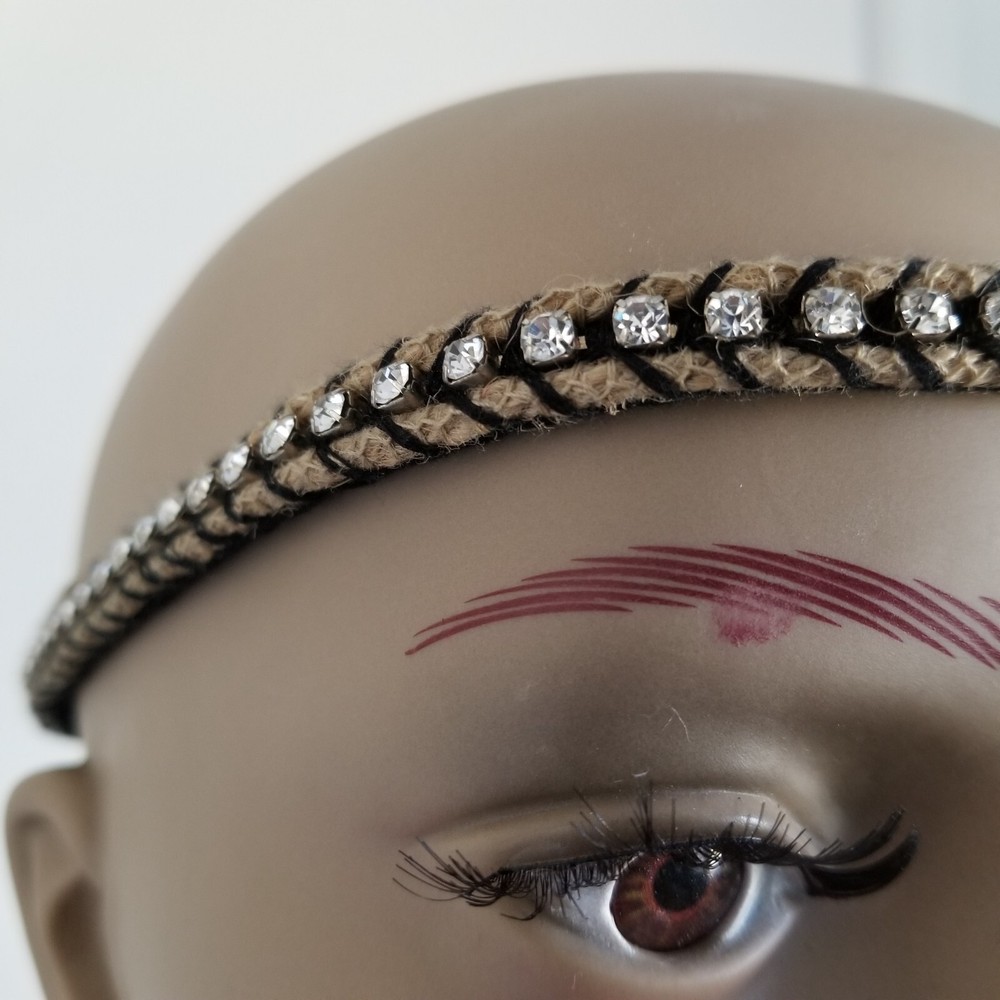 Black & Tan Imitation Diamond Cotton Tweed Stylish Headband