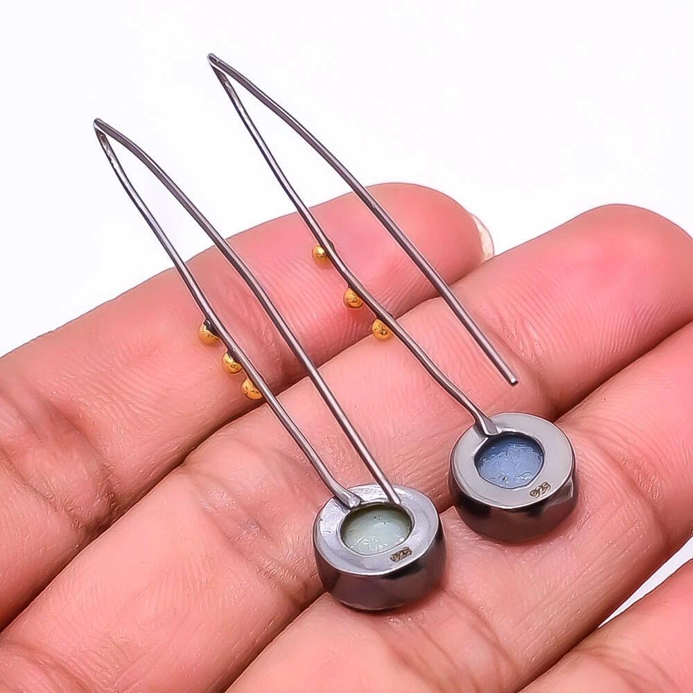 Theme Beauty Main Stone Depth As Seen in Picture Main Stone Length As Seen in Picture Main Stone Width As Seen in Picture Seller Warranty Yes Shape As Seen in Picture SKU E_9420_240_54 Main Stone Cut Type Drusy Main Stone Size 10X10 Mm Antique Yes Handmade Yes Type Earring Style Drop/Dangle Metal Sterling Silver Metal Purity 925 Parts Per 1000 Base Metal Sterling Silver Total Carat Weight 18 Main Stone Titanium Agate Drusy Main Stone Creation Natural Main Stone Shape Round Main Stone Color Black Main Stone Treatment Natural Material Gemstone, Stone Number of Gemstones 2 Item Length 1.95 Features Engraved, Nickel-Free, Handcrafted Ear Area Lobe Brand Unbranded Country/Region of Manufacture India Country of Origin United States Color As Seen in Picture Diamond Clarity Grade Not Applicable Number of Diamonds As Seen in Picture Item Diameter As Seen in Picture Gemstone Clarity Grade Opaque Diamond Color Grade Not Applicable Customized No Colored Diamond Intensity Not Applicable Certification 100% Genuine Guaranteed Setting Style Bezel Occasion Christmas, Birthday, Anniversary, Engagement, Wedding, Valen Shipping & Handling - Charge - 1st item-5.90 And Additional item-1.90 Handling Time - 1 Days . Delivery Time - 2 TO 3 DAYS. Shipping Service - USPS First Class Package 2 -3 Days. Returns - 1.We offer a 100% Money Back Guarantee minus shipping for 30 days after receiving the Item / item's. 2..The item must not be altered or damaged in any way shape or form. 3.Upon receiving these items your payment will be refunded. 4.Email us for return instructions before sending merchandise back. 5.Please allow up to 1 business day for all returns to receive credit. 6.Sizing does not affect the return policy. Payment - We accept PayPal for Payment ,should made with in 14 days once buying or winning done , in case of late information expected .