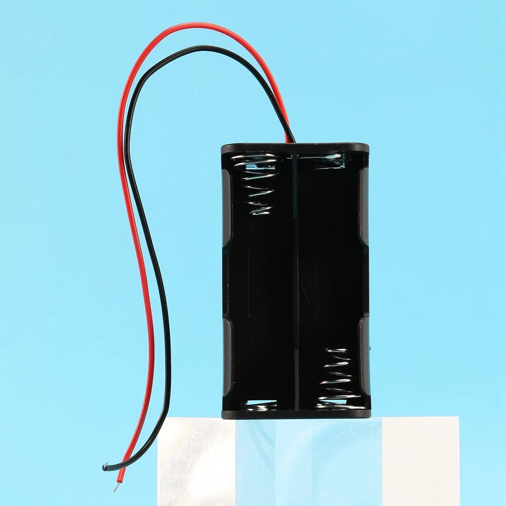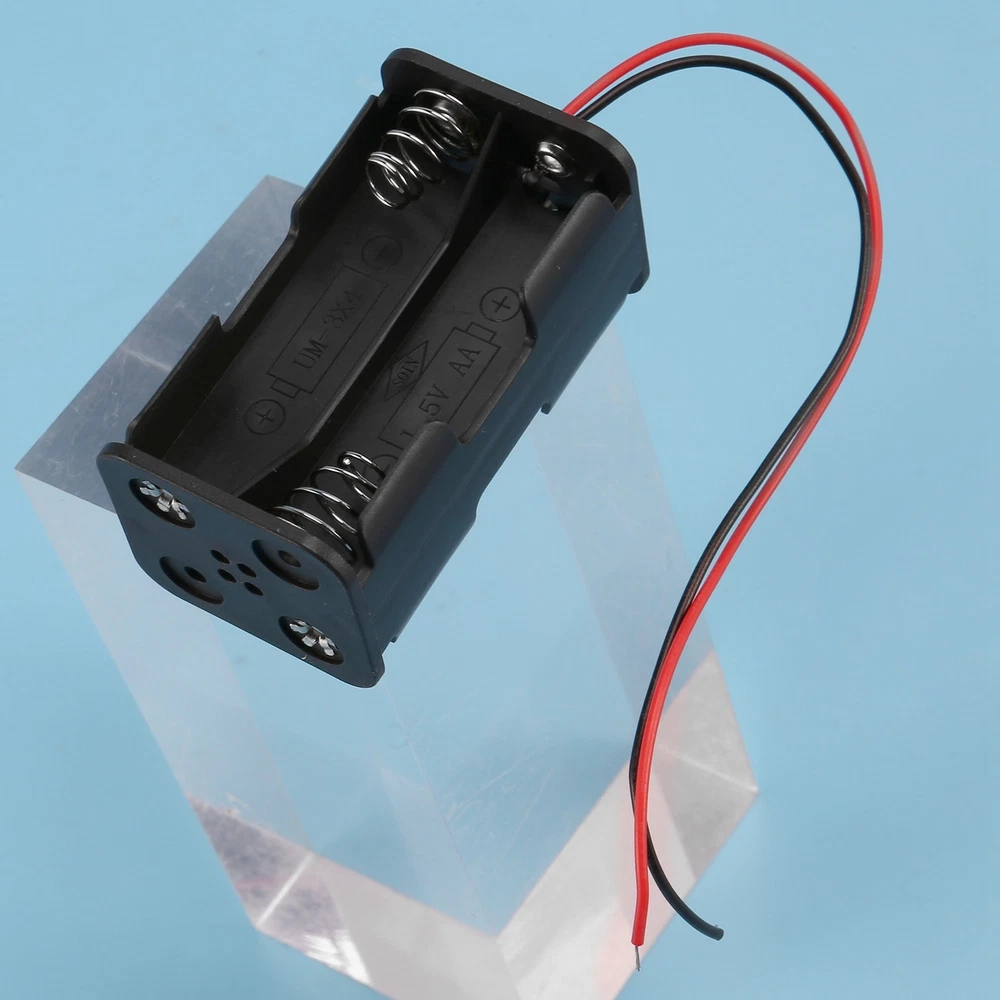 Black Tow Layers 4 x 1.5V AA Batteries Battery Holder Case Box w Wire Leads N2E9 Product Name : Battery Case;Material : Plastic, Metal Body Size : 5.7 x 3.1 x 2.9cm/2.2" x 1.2" x 1.1"(L*W*H);Cable Length( Each ) : 15cm/5.9" Battery Type : 4 x 1.5V AA;Color : Black Net Weight : 11g This battery box holder with wire connector, fit for 4 x 1.5 V AA batteries. With spring clip design, you can easily to put the battery in it. Battery is not included here. Package Content : 1 x 1.5V Battery Case Holder Note:Light and different displays may cause the color of the item in the picture a little different from the real thing. The measurement allowed error is +/- 1-3cm.