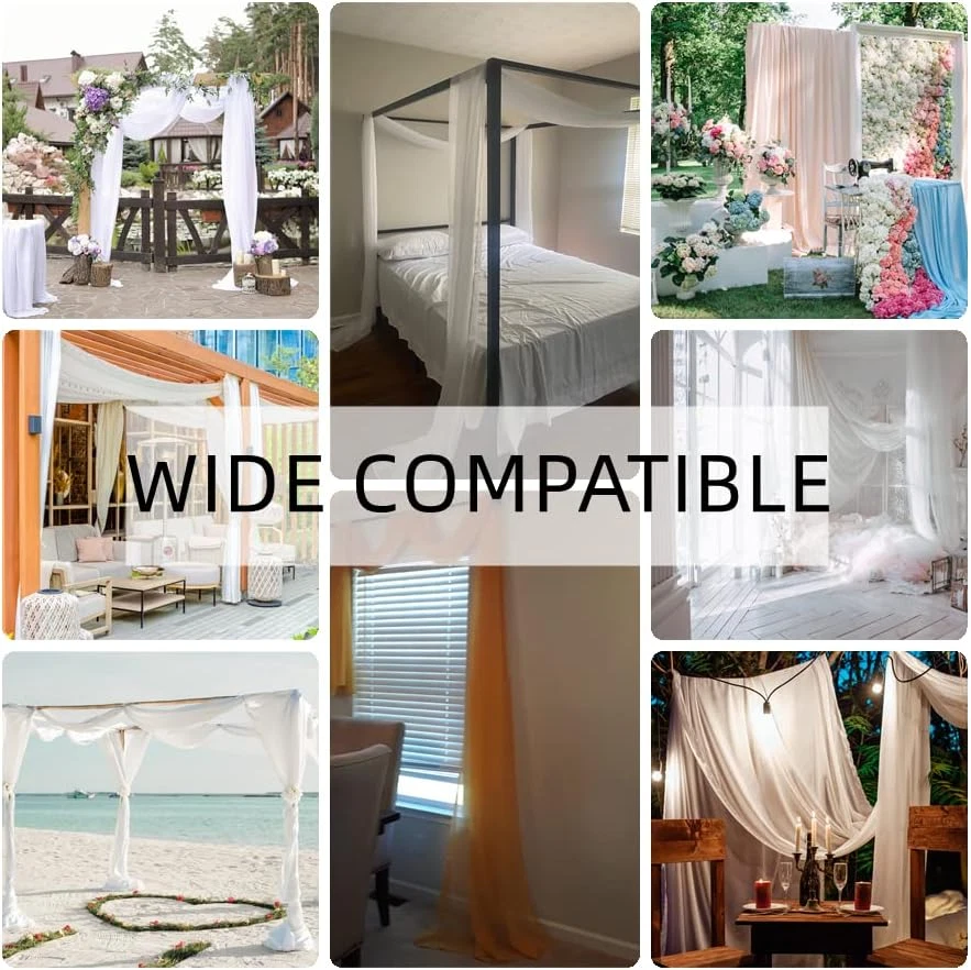 Premium quality fabric : Our premium sheer scarfs are made from high thread voile polyester, making them strong, long-lasting, and less likely to rip or tear. Bed canopy scarf curtain Includes 1 long length 52" x 216" voile valance scarf. Perfect Decoration : Our sheer fabric window scarves can be used to top a window, make a bed canopy, decorate a child's room, kids canopy, or even for mosquito protection. Multifunction : Scarves can be used for wedding backdrop, baby shower backdrop, photo backdrop, party decoration, mosquito net for bed, birthday backdrop, gender reveal backdrop, baby shower backdrop for girl, background for photography, party backdrop, wedding decoration for reception, white backdrop, birthday backdrops, bed curtains From ceiling, wedding decorations for reception, or window scarfs for living room. Easy to Care : One voile sheer scarf is included in the package. Machine wash and hand wash are all available. Iron and tumble dry at low temperatures, Do not Bleach. Nice Service: Decorate your home, high quality. Nice pre-sale and after-sale service. Your 100% satisfaction is our #1 priority. If there is any questions please feel free to contact us and our customer service team will respond within 24 hours. Product Description