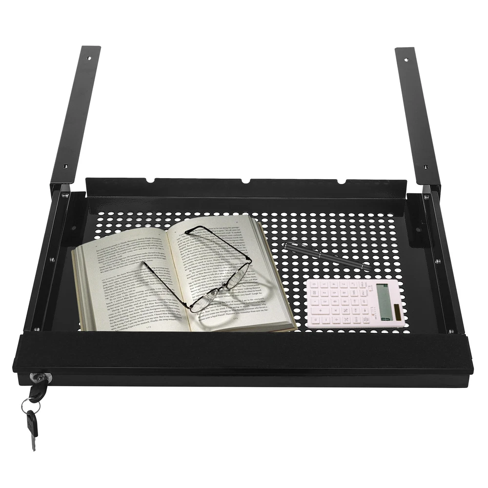 Description Declutter your workstation and enjoy a clean space with this sliding pull-out drawer. You can access your materials without disturbing office neighbors thanks to the quiet, smooth sliding mechanism, and the sleek design blends well with a majority of environments whether at home or in the office. Buy it quickly and enjoy a more convenient life. Black Under-Desk Drawer Storage Organizer for Standing Desks Pull-out Drawer Description Declutter your workstation and enjoy a clean space with this sliding pull-out drawer. You can access your materials without disturbing office neighbors thanks to the quiet, smooth sliding mechanism, and the sleek design blends well with a majority of environments whether at home or in the office. Buy it quickly and enjoy a more convenient life. Key Features Sturdy and Durable: It is made of high-quality iron with welding and plastic spraying processes, which is non-toxic, odorless, anti-corrosion, and rust-resistant, ensuring its beauty and long-term use. Excellent Organizer: You can put your mouse, charger, sticky notes, etc. in it, and can be used at hand, bringing convenience at the same time can also make your desktop more neat! Maximize Your Desk Space: You can hide it under the table, and it does not take up space in your space and can store a variety of items so that your desktop is not messy. Thoughtful Design: You can retrieve your items quickly and quietly with its smooth sliding mechanism without disturbing others. In addition, the locking and enclosed design ensures that the items you place are secure and protected from dust. Ready to Go: The one-piece structure and pre-drilled holes allow you to install it directly after receiving it, which is very time-saving and convenient! Easy to Clean: Thanks to its simple construction and smooth surface, you can wipe the stains off its surface with a damp rag. Ideal Gift: Thanks to its practicality and beauty, you can give it to your friends as a holiday or housewarming gift! Protective Package: We use pearl cotton to package this product to minimize damage to the product during transportation. Details Rounded Edges: The smooth and rounded edges are comfortable to touch and improve the safety of use. Fixing Screws: They make this product structure more stable to store your writing utensils and office supplies with assurance. Heat Sinks: It ensures air circulation to keep the items you place fresh and safe. Application It is installed under the table to store various items, such as a keyboard, mouse, books, iPad, phone, pen, pencil, glue, eraser, adapter, earphone, cosmetics, or other small items used regularly. It is designed to fit both standing desks and standard fixed-height workstations. It's designed for 17-inch laptops or smaller. Specification Color: Black Style: Modern Material: Iron Process: Welding and Plastic Spraying Shape: Rectangular Mount Type: Under Table Mount Applicable Table Thickness: 20mm/0.79in Product Inner Size: 45*33.8*4.57cm/17.72*13.31*1.8in Product Outer Size: 47.6*44.6*5.51cm/18.74*17.56*2.17in Package Size: 51*48*8cm/20.08*18.9*3.15in Load Capacity: 2kg/4.4 lbs Net Weight: 2.6kg/5.73 lbs Gross Weight: 3.1kg/6.83 lbs Package Included 1* Sliding Pull-out Drawer 2* Keys Notes Please check that the desktop type is appropriate before purchasing. Please note that this product does not contain any other items shown in the picture. Please ensure that your desk can support the total weight of the drawer and load capacity. Please allow the slight color difference caused by the shooting light and 1-3cm error due to manual measurement and make sure you do not mind before ordering. Payment Delivery details Terms of sales About us Contact us Payment We accept ebay payment 。 Fees such as import duties, taxes are not included in the item price or shipping costs. These charges are the buyer's responsibility. Delivery details Shipping: 2-9 working days to: USA Terms of sales We maintain high standards of excellence and strive for hundred percent customer satisfaction. Feedback is very important to us. We hope that you contact us immediately before you give neutral or negative feedback, so that we can address your concerns. It is impossible to address issues if we do not know about them! About us Your satis faction is our ultimate goal. We work hard to earn your trust and future business. Our certified technicians have tested each item before shipping. The unit comes with 1 year limited warranty on all manufacturing defects. a) If you receive a defective item, you may return it or ask for a discount. Please contact us within 14 days after you receive the package. b) What you returned must be intact and in its original packaging as re? u. Customer is responsible for shipping costs of the returned item. c) We will cover the cost of shipping back t with the shipping rate indicated in the registration page. We will send you a new unit or refund the full payment you paid. Thank you. Contact us Business Hour Business Hour: Monday To Friday: 8:30 AM to 5:00 PM (Beijing China time) Due to time zones, our reply to your questions may not be immediately. But within above working time, we will reply your email within 24 hours. If it's non-workdays, please kindly be patient and wait till Monday. Please contact us with ebay message. Please feel free to contact us if you have any questions. Monday To Friday: 8:30 AM to 5:00 PM (Beijing China time) Due to time zones, our reply to your questions may not be immediately. But within above working time, we will reply your email within 24 hours. If it's non-workdays, please kindly be patient and wait till Monday. Please contact us with ebay message. Please feel free to contact us if you have any questions. Warranty 5 Years Manufacturer Warranty 10 Years Brand Unbranded MPN N/A Material Iron Type Desktop Organizer Color Black Process Welding and Plastic Spraying Shape Rectangular Mount Type Under Table Mount Applicable Table Thickness 20mm/0.79in Product I