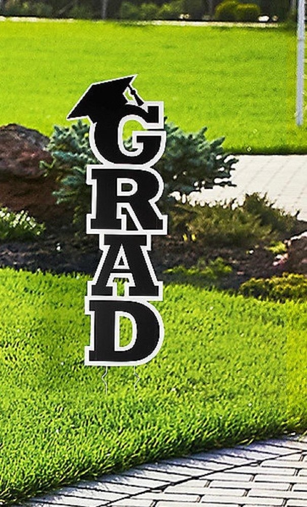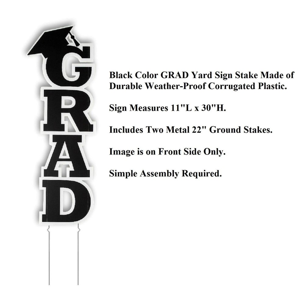 Black Vertical GRAD & Cap Yard Stake Graduation Party Plastic Sign 11"x30" #629 Black Vertical GRAD & Cap Yard Stake Graduation Party Plastic Sign 11"x30" #629 Click images to enlarge Description Black Vertical GRAD & Cap Yard Stake Graduation Party Plastic Sign 11"x30" . Let everyone know there is a "GRAD" at your house with this black bold lawn stake sign. The "G" is topped with a graduation cap and the large letters will make it really stand out in your yard. Whether for high school, college, or even moving up from elementary school to middle school, this sign is perfect for party decor. Details: Measures 30"High x 11"Long Made Of Corrugated Plastic Includes Metal Stakes Stakes Securely Into Ground Design Is On One Side Only Requires Simple Assembly Re-Usable Other Colors Available In Our eBay Store, While Supplies Last. ~Buy more than one item at the same time from our eBay store and save in shipping costs!~ (If buying different items, just put them all in your cart before paying, to get the combined shipping discount!) Shipping We use UPS SurePost, UPS, USPS and FedEx SmartPost to deliver our products to your home, depending on which method is more efficient for your order. We use suppliers for some of our orders and our suppliers will choose the service that is used for these orders. PLEASE MAKE SURE YOUR ADDRESS CAN BE VERIFIED BY USPS. Please allow 7-10 days for the item to reach your home. We cannot be responsible for items shipped to incorrect or incomplete addresses, which may result in the cancellation of your order. YES, we do combine shipping! The highest shipping cost item ships at regular price, and each additional item ships at $2.00 more in additional shipping charges. If you are buying several different items from our store, put them all into your cart before paying to get the combined shipping discount. Terms of Sale Unless otherwise noted, we accept returns up to 30 Days after your purchase, through the eBay Returns System. Please use eBay to contact us if there is any problems or issues with your order. In some cases, we order the item purchased from one of our suppliers, and it is shipped directly from our supplier to the customer. There are times when an item unexpectedly becomes unavailable from our supplier. We do our best to check on all of the items availability several timea a day. If an item is unexpectedly unavailable, we will issue a refund immediately. Contact Us Please use the message center in eBay to contact us. We check our message box in eBay several times a day. If you have any questions or concerns with your order, please feel free to contact us. We care very much about our customers being 100% happy with their purchases. We would very much appreciate you letting us resolve any issues you may have with your order by contacting us first, before taking any other unnecessary actions. Get images that make Supersized seem small. Showcase your items with Auctiva's Listing Templates! THE simple solution for eBay sellers.