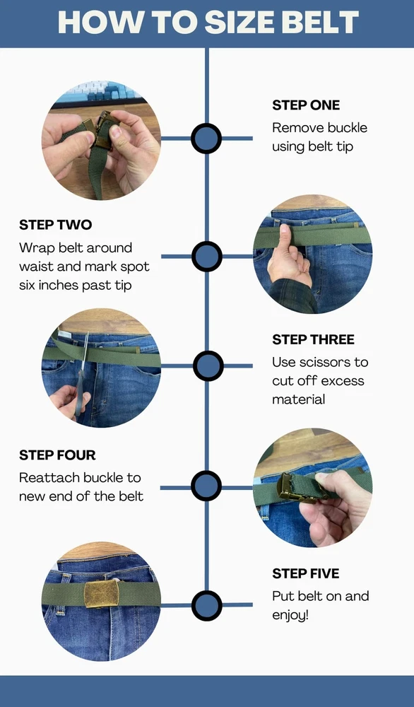Description These military style web belts come with chrome tip and buckle. The belts all measure 55 inches long so you can cut them to whatever size you need. The belt is 1.25 inches wide. Chrome Buckle and Tip - Strong Acrylic Canvas Webbing Fully Adjustable - To Release The Belt Hold Buckle And Pull Metal Tip Forward Slightly 54 Inches Long - 1 1/4 or 1.25 Inches Wide Webbed Belt Canvas Material - Perfect for Men, Women, and Children Can Be Worn For School Uniforms, Work, Casual, Dress, Outdoor, Military, Golf or Other Sports