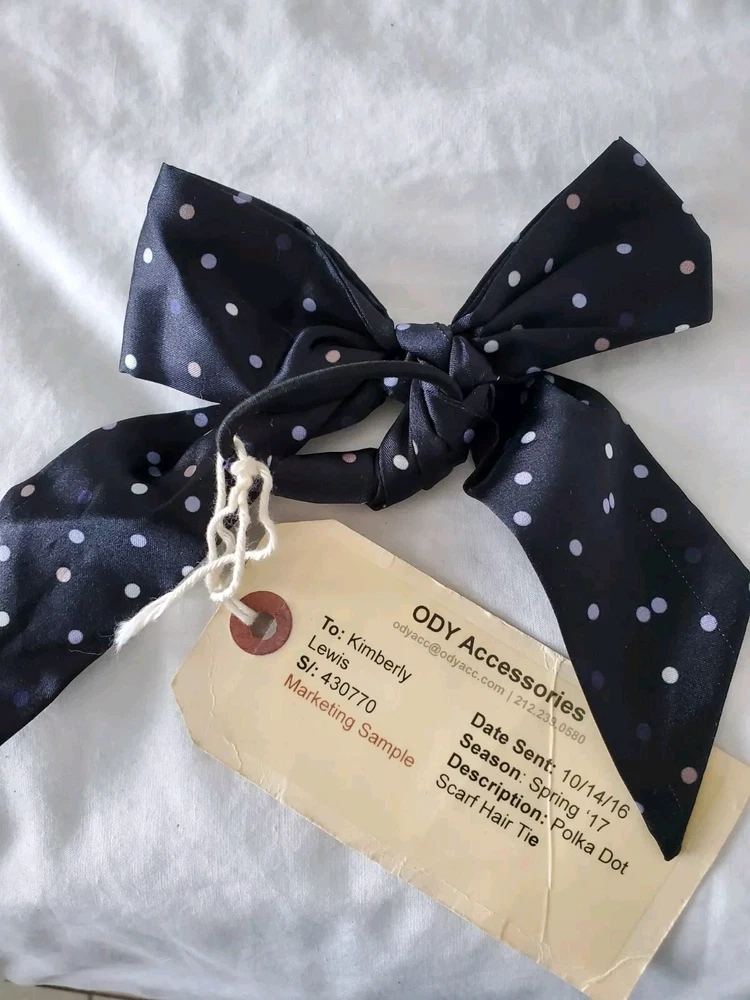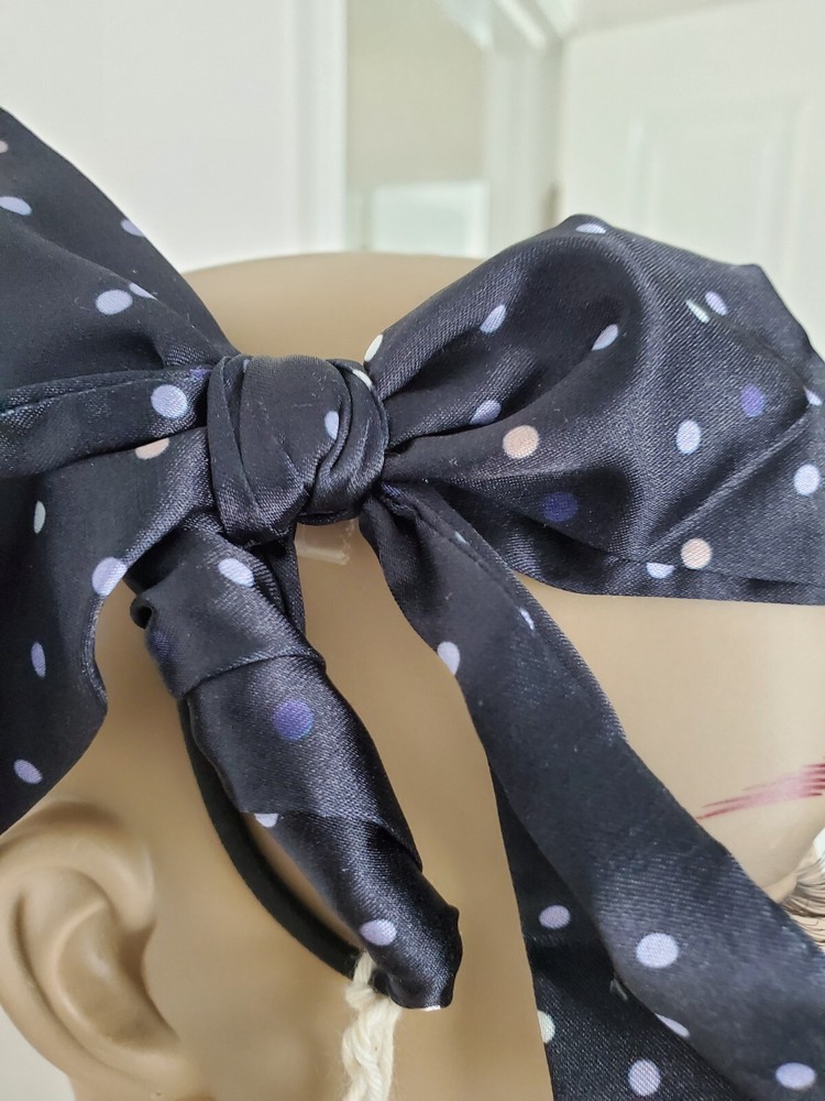 Black White Polkadot Scarf Hair Tie by Ody Accessories