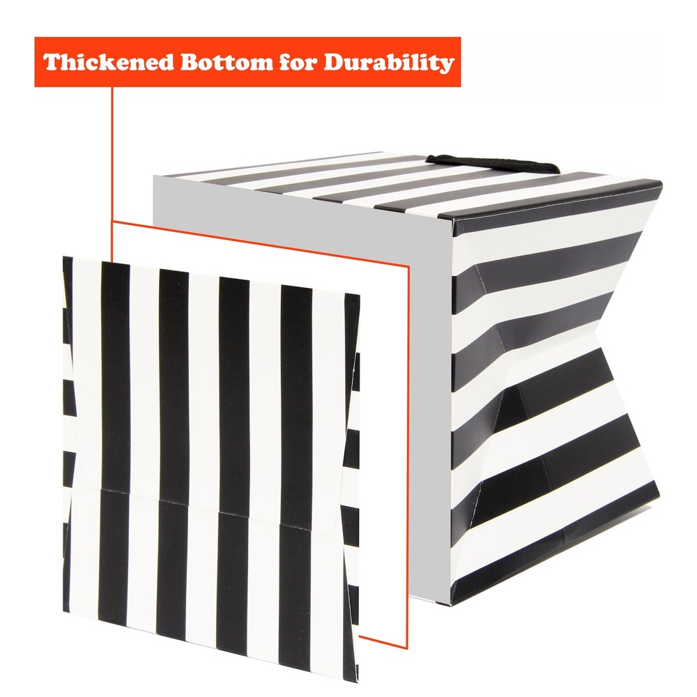 eBay Product Listing Welcome to Your Favorite My Store Your satisfaction is our top priority – Shop confidently Black and White Striped Gift Bags with Handles, Small Square Black White Gift Bags for Wedding Baby Shower Birthday Party (6 x 6 x 6 in, 10 CT) Item Gallery Item Description [You Will Get] 10 CT a set black and white gift bags with handles, striped color. [6 in Elaborate Size] Classic 6 x 6 x 6 in square small white black gift bags with thickened bottom. [Portable Square Gift Bags] Lightweight and easy to fold, easy to and carry, square paper gift bag can be diy, so that the gift is more personalized heart. [Widely Usage] A set of square striped gift bags with rope handles for variety uses, flower bouquet bags, gift giving bags, goodie bags, Christmas gift bags, Merchandise bags, Shopping bags and more. [Variety Occasion] Ideal for Birthday party, Baby shower, Wedding, Bachelorette party, Christmas, Thanksgiving, New year eve, Valentine's Day, Mother's Day, Graduation season etc. Special Features Small striped gift bags with Large Capacity: Square gift bags come in 10 packs, measured 6" length 6" width 6" height. Absolutely Easy to Use: Comes in flat, ready to use without assembly, each square gift bag has a square bottom, and easily stands up. Durable and Sturdy Gift Bags: Made of thickened white cardboard paper. The widening rope handles are extremely sturdy. Merchandise Bag Multiple Uses: Perfect solution as gift giving bags, retail checkout bags, merchandise bags, party favor bags, wedding gift bags, treat bags, sturdy paper bags and more. Suitable for Various Occasions: Great for Mother's Day,Thanksgiving, Father's Day, traveling, grocery , supermarket, outdoor picnic, bulky items. Give Play to Your Creativity to DIY: Use stickers, watercolor pens or anything to make this blank paper bag unique. Our Guarantee To You We offer fast shipping, free delivery, and 100% customer satisfaction guarantee. Not satisfied? Return your item for free within 30 days. 30-Day Free Returns Shipping Details Items will be sent to your eBay address. Please verify before purchasing. Typical delivery within 3-7 business days. Professional shipping services used for all orders. We ship to the continental US (48 states only). Unable to deliver to Alaska, Hawaii, or territories. No APO/FPO or PO Box deliveries available. We use eco-friendly packaging Payment Options We accept these secure payment methods: All transactions securely processed through eBay's payment system. Simple Returns 30-Day Satisfaction Promise Contact us through eBay messages within 30 days of delivery. We'll provide return instructions and our address. Return the item in its original condition. We'll process your refund within 48 hours of receiving the item. Get In Touch Have questions about your order? Contact us through eBay messaging for prompt assistance. We typically respond within 24 hours.