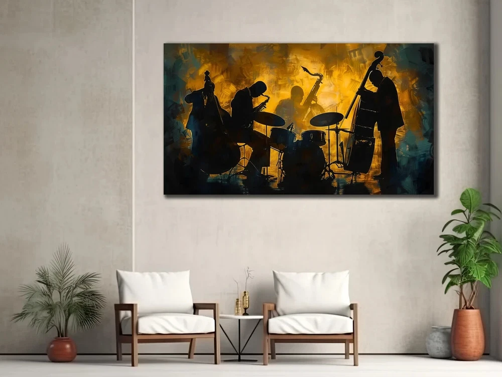 Black Yellow Music Jazz Band Abstract Unframed Canvas Print Australian Wall Art