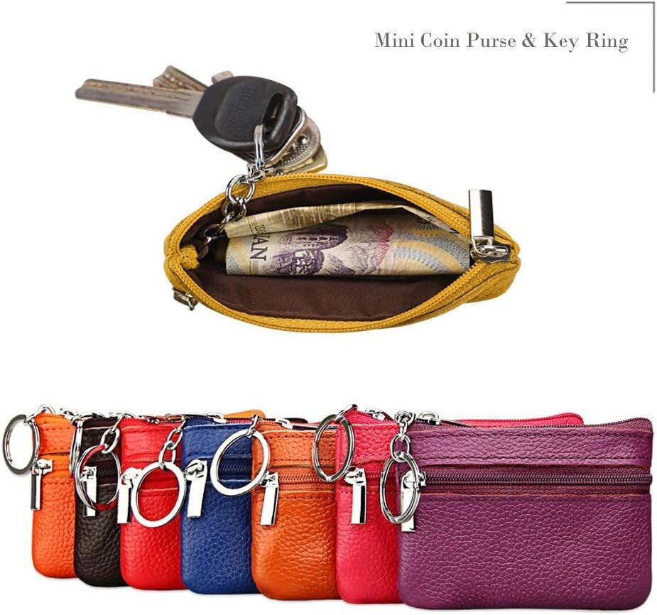 About this item Made with soft and durable genuine leather. Two durable metal zippers to keep your belongings secure. Super mini size of L 10cm x H 7cm / L 4" x H 2.8" for easy portability. Internal key ring to keep your keys handy. Available in multiple colors to match your style.