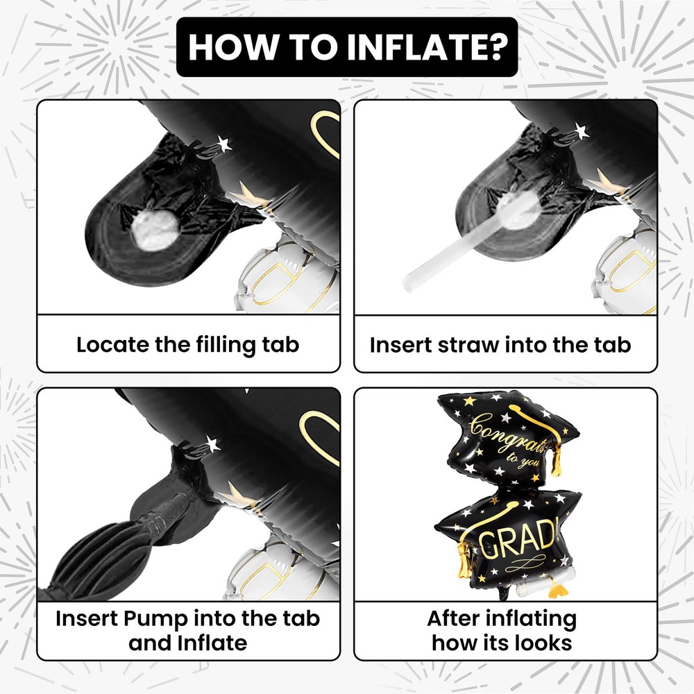 BIG SIZE - 32 INCH | BLACK AND GOLD FOIL BALLOON : Show off your excitement and be proud with the achievements with this giant and beautiful Graduation Hat Balloons that will leave everyone awestruck and add fun element to your congrats grad hat balloon party. Perfect for the graduation 2025 decorations or retirement/work promotion. Show off your excitement and be proud with Graduation cap decorations. Unique graduation cap foil balloons for graduation party decorations 2025. PACK OF 4 | HELIUM SUPPORTED | LITTLE DIY REQUIRED : These Black and gold graduation balloons party favors are helium supported and are size of 32x20 Inch with pack of 4. Simply hang these Graduation grad balloons on the wall, ceiling or at the entrance door to start the excitement. Perfect 2025 graduation balloons class of 2025 for your black and gold graduation decorations class of 2025 or globos de graduacion 2025, Gold Graduation cap balloon. REUSABLE | STURDY | VERSATILE : This 2025 graduation large multicolor graduation cap balloons decor are made sturdy enough to stand long-hour display. This Grad Balloons kit can stay inflated for days or even weeks. Grad cap balloon deflate carefully and proper. These congrats grad foil balloon can be stored to use for next year gold graduation foil balloons decorations. Graduation mylar balloons 2025 graduation party decorations perfect for all ages. ELEVATE YOUR EXPERIENCE : Customer satisfaction is our utmost priority so we made sure to use the grade "A" quality foil material in this 2025 balloons graduation decorations, if for some reason you don't find the congrats balloons satisfactory we are here to help you. Don’t miss this one of a kind graduation cap metallic balloon and start getting more complements for your graduation cap foil balloon 2025 decorations. PICTURE-PERFECT FOR SOCIAL POSTS : Looking for a unique and beautifully crafted mylar graduation balloons 2025? Level up your creative decorating ideas with our innovative style of congrats grad balloons. Give your guests a good vibes upon seeing these huge foil balloons graduation decor class of 2025 balloons. Grab your grad cap mylar balloons for graduation foil balloons 2025 decorations now. Powered by BRND.ME