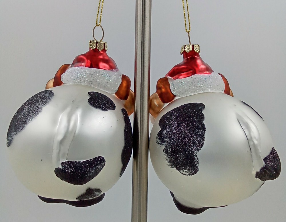 Black & White Cows w Santa Hats, Blue Eyelids, Big Noses Ornaments 5" Set of 2. Measurements are approximately 5x4". Condition is pre-owned. There is a little wear on a couple of black spots but looks more like they were distressed. Otherwise, there is no wear or tear is visible to the eye. Please check our photos in this listing for further information. If you have any questions or concerns, please contact us. Please check out The Burly Owl Lady eBay store for more home decor goodies! Shipped USPS. We ship vintage and new items. We carefully pack with care to ensure the safety of each item. We do not pass these packaging costs onto the buyer. Furthermore, we do not charge any extra fees for handling. We only charge for the USPS shipping charge. We do monitor shipping prices frequently. In most cases, we do find the USPS to be the most inexpensive way to ship our products. We try to be as detailed as we possibly can in our photos and descriptions. We try to mention any imperfections in our vintage items. We may miss things from time to time or our photos may not be enough clarification for you to see the item. We will be glad to answer any questions or send you more photos. If at any time, you have a question or issue, please contact us immediately. We will contact you within 24 hours. We want to make sure you have a good experience in purchasing any of the products. If you are happy with your purchase, please leave feedback. It will help us to grow and offer more great items in our store! Thank you for your interest in one of the many products in our eBay store! Renee Burly Owl Lady