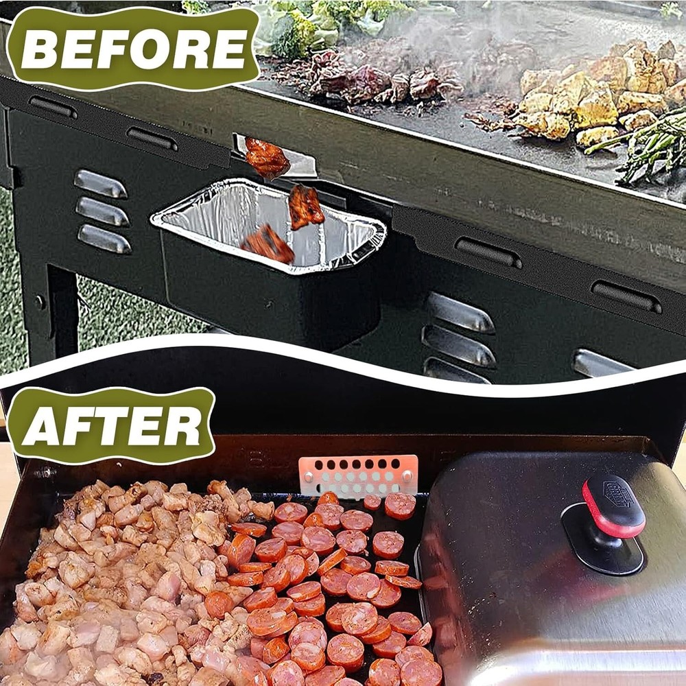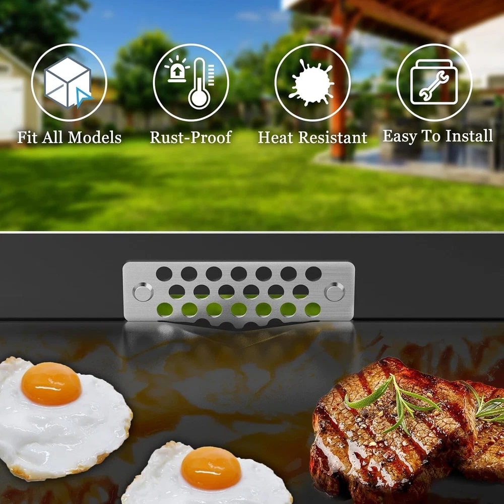 This griddle grease gate blocker is a must-have for any Blackstone owner! It keeps food from falling into the grease trap, making cleanup so much easier. The stainless steel construction is sturdy and holds up well to heat. Fits perfectly and stays secure while cooking. Highly recommend for hassle-free griddle sessions!