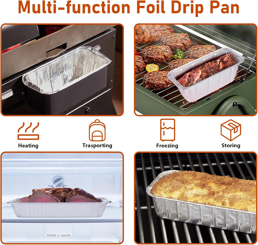 Perfect Fit : Each grease cup liner measures 8 x 3 x 3.7 inches and fit the grease tray on your Blackstone griddles 28 inch, 30 inch, and 36 inch. These Blackstone 5017 drip pan liners for the Blackstone 22 and 17 inch models will require you to bend the liners slightly to fit properly No More Messy Grill : The grill drip tray is the perfect accessory for your grease catcher. Specifically designed to collect grease and drippings from cooking delicious food on your gas grill for a clean, mess-free grilling experience Make Cleaning A Breeze : Simply fill the disposable foil drip pan liner and collect the grease and food residue, and once you're done, you can throw it away for a new drip tray, helps with easy cleanup after cooking and seasoning. Set of 30 drip pans to last all Season, price point - a fantastic value Durable And Space-saving : These drip pan liners are made of high quality aluminum foil, sturdy, heavy-duty, won't break easily, eco-friendly and 100% recyclable. The aluminum drip pans are also stackable to help you save shelf and countertop space. Lightweight and easy to carry, they are a great addition to your outdoor grill Multipurpose : Absorbs and reflects heat more efficiently, withstands extremely high temperatures without warping or melting, perfect for use in the oven or on the grill. Our grease cup liner can also be used in ovens and freezers, ideal for preparing food or preserving food before you get ready to grill. Great for baking, barbecues, grilling, beach, camping, picnics, parties and more Product Description Disposable Grease Catch Liners Replacement for blackstone Outdoor Gas Griddle. No clean up necessary Just throw away once finished, simple and efficient grill maintenance, keeping your grill clean has never been easier. Easy To Use - Simply insert it into the iron plate drip pan, fill it up and throw it in the trash. Compatibility - Perfectly compatible with Blackstone 28-inch and 36-inch skillet oil cups. Almost fits (liner needs to be slightly curved) Blackstone 22-inch grill. Heavy Duty Construction - These aluminum foil grease cup liners are strong enough to hold the weight of grease and all the mess. Save Time and Effort - Economical to pack in bulk, they are a must-have for cleaning your iron plate. Large Capacity - These foil oil cup liners hold up to 27 ounces of oil. Grill Baking Cooking Freezing EFFORTLESSLY KEEP YOUR BLACKSTONE GRIDDLE CLEAN These drip pans effectively trap grease and drippings, ensuring hassle-free griddle maintenance. Simply discard it and replace it with a fresh one to make clean up a breeze. HIGHER QUALITY MATERIAL The foil liner is made of 100% recyclable and heavy-duty aluminum foil that doesn’t leak and is food-grade., each aluminum foil tray can be reused. Add to Cart Add to Cart Customer Reviews 4.8 out of 5 stars 527 4.8 out of 5 stars 1,576 4.8 out of 5 stars 527 4.8 out of 5 stars 527 4.6 out of 5 stars 29 Price $12.99 $ 12 . 99 — $11.99 $ 11 . 99 — $16.99 $ 16 . 99 Size For 7"*3" drip pan For 7"*3" drip pan For 7"*3" drip pan For 7"*3" drip pan 9" * 6.5" Heavy-Duty ✔ ✔ ✔ ✔ ✔ 100% recyclable ✔ ✔ ✔ ✔ ✔ Material Aluminum Aluminum; Meatl Aluminum Aluminum Steel,Nylon,Pumice Stone Package 30 16 20 12 9 Pcs