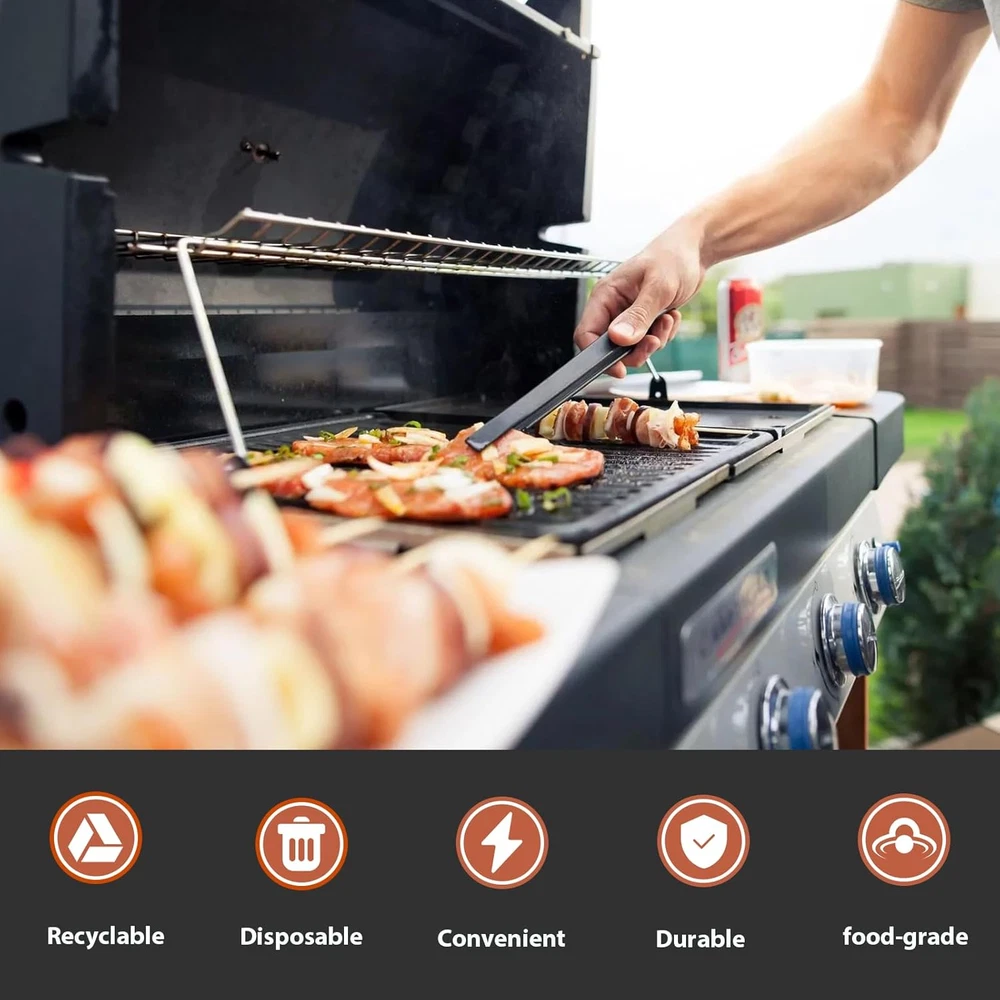 These liners are total game-changers! No more scrubbing messy grease trays after cooking. They fit my 36-inch Blackstone perfectly and make cleanup a breeze. Just toss them when done - so convenient for backyard barbecues!