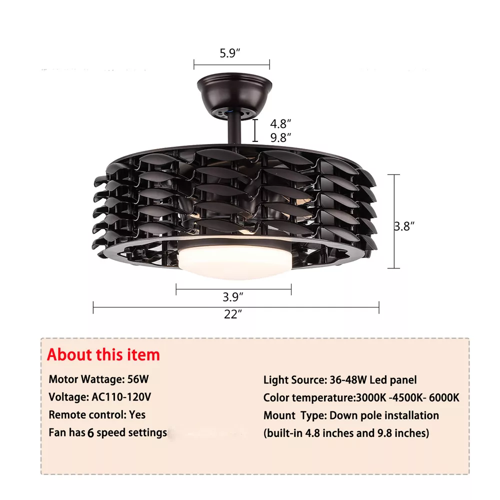 Product description ▶ 【Ceiling Fan】: Diameter 22" / 55 cm, Usually as an ordinary fan, it promotes air circulation very well.Leafless ceiling fan light, When closed ceiling fan, leaving only a beautiful led chandelier. ▶ 【Pure Copper Mute Motor】: Quiet motor, create a comfortable space. Safe and Energy saving, long used life, strong power, Unique design Modern style. ▶ 【Energy saving and durable】: A combination of classic and innovative technology, new LED light source, life expectancy up to 60,000 hours, replaceable LED driver for convenient and durable use. ▶ 【Multi-Function Setting】: All operations can be controlled by the remote control, adjust the lighting switch of the ceiling fan (white light - warm light - yellow light), wind speed (low - medium - high), The fan or illumination c Bladeless Ceiling Fan 22" LED Light 3 speed Chandelier Remote Control 110V SALE Product description ▶ 【Ceiling Fan】: Diameter 22" / 55 cm, Usually as an ordinary fan, it promotes air circulation very well.Leafless ceiling fan light, When closed ceiling fan, leaving only a beautiful led chandelier. ▶ 【Pure Copper Mute Motor】: Quiet motor, create a comfortable space. Safe and Energy saving, long used life, strong power, Unique design Modern style. ▶ 【Energy saving and durable】: A combination of classic and innovative technology, new LED light source, life expectancy up to 60,000 hours, replaceable LED driver for convenient and durable use. ▶ 【Multi-Function Setting】: All operations can be controlled by the remote control, adjust the lighting switch of the ceiling fan (white light - warm light - yellow light), wind speed (low - medium - high), The fan or illumination can be turned on separately. Installation Tips: ♥ Please check the dimensions before ordering, just to ensure it is suitable for your room. ♥ Please note that this crystal fan requires self-assembly, needs patience to put it together, but it will be definitely worth it when you done. ♥ Please check carefully the instruction manual before installation. Ensure the fixture is disconnected from mains power before installation. ♥ You can also replace the down rod as you wish, but we suggest no longer than 45 inches. We suggest you ask a professional technician for help if you are not good at installing. What’s in the box ♥ Ceiling fan x1 ♥ Screws sets x1 ♥ Down rods x 2 (Rod length: 25 cm /9.84inches and 12 cm / 4.72 inches) ♥ Remote control x1 ♥ Instruction Manual x1 Payment Delivery details Terms of sales About us Contact us Payment We accept ebay payment 。 Fees such as import duties, taxes are not included in the item price or shipping costs. These charges are the buyer's responsibility. Delivery details Shipping: 2-9 working days to: USA Terms of sales We maintain high standards of excellence and strive for hundred percent customer satisfaction. Feedback is very important to us. We hope that you contact us immediately before you give neutral or negative feedback, so that we can address your concerns. It is impossible to address issues if we do not know about them! About us Your satis faction is our ultimate goal. We work hard to earn your trust and future business. Our certified technicians have tested each item before shipping. The unit comes with 1 year limited warranty on all manufacturing defects. a) If you receive a defective item, you may return it or ask for a discount. Please contact us within 14 days after you receive the package. b) What you returned must be intact and in its original packaging as re? u. Customer is responsible for shipping costs of the returned item. c) We will cover the cost of shipping back t with the shipping rate indicated in the registration page. We will send you a new unit or refund the full payment you paid. Thank you. Contact us Business Hour Business Hour: Monday To Friday: 8:30 AM to 5:00 PM (Beijing China time) Due to time zones, our reply to your questions may not be immediately. But within above working time, we will reply your email within 24 hours. If it's non-workdays, please kindly be patient and wait till Monday. Please contact us with ebay message. Please feel free to contact us if you have any questions. Monday To Friday: 8:30 AM to 5:00 PM (Beijing China time) Due to time zones, our reply to your questions may not be immediately. But within above working time, we will reply your email within 24 hours. If it's non-workdays, please kindly be patient and wait till Monday. Please contact us with ebay message. Please feel free to contact us if you have any questions. StartPrice 186.87032 Brand Unbranded Installation Area Indoor Item Width 22" Type Ceiling Fan Lighting Technology LED Mounting Ceiling Control Style Remote Control Features With Light, Remote Control Light Color (white light - warm light - yellow light Number of Speeds 3 Manufacturer Warranty 2 years Fan Width 22" Color Black Voltage 110V Style Modern Room Bathroom, Bedroom, Dining Room, Garage, Hallway, Home Office/Study, Kitchen, Living Room, Laundry/Utility Room, Playroom Model HG-HCX-2319 Sensor Type N/A Manufacturer N/A Number of Blades N/A Material N/A Blade Color N/A Cord Color N/A Number of Settings N/A Design N/A Power Source N/A Energy Star A LED String/Strip Type N/A MPN N/A EC Range A - G On Jan 5, 2025 at 22:48:41 PST, seller added the following information: