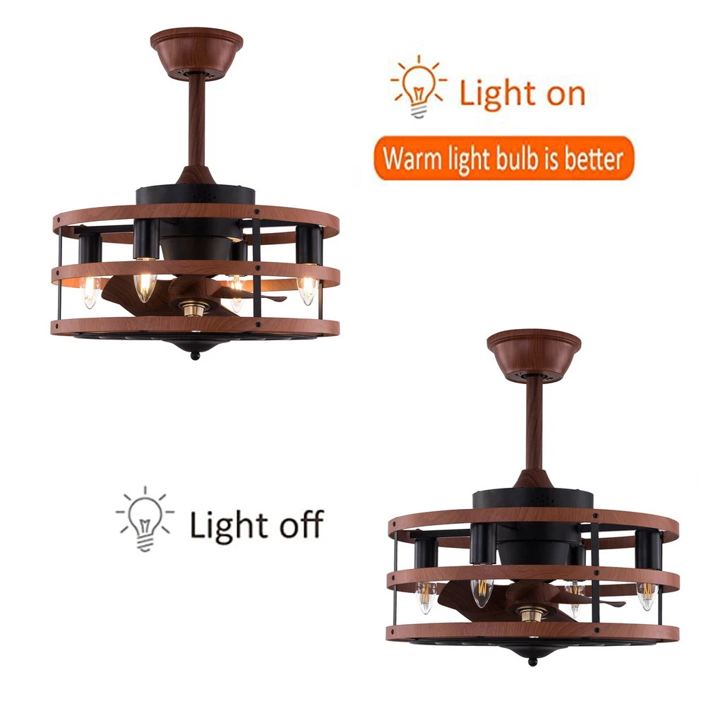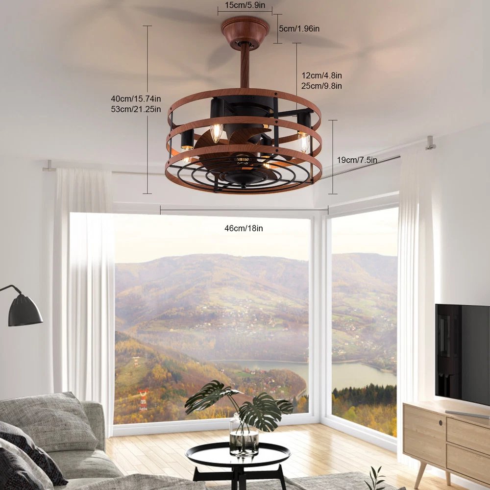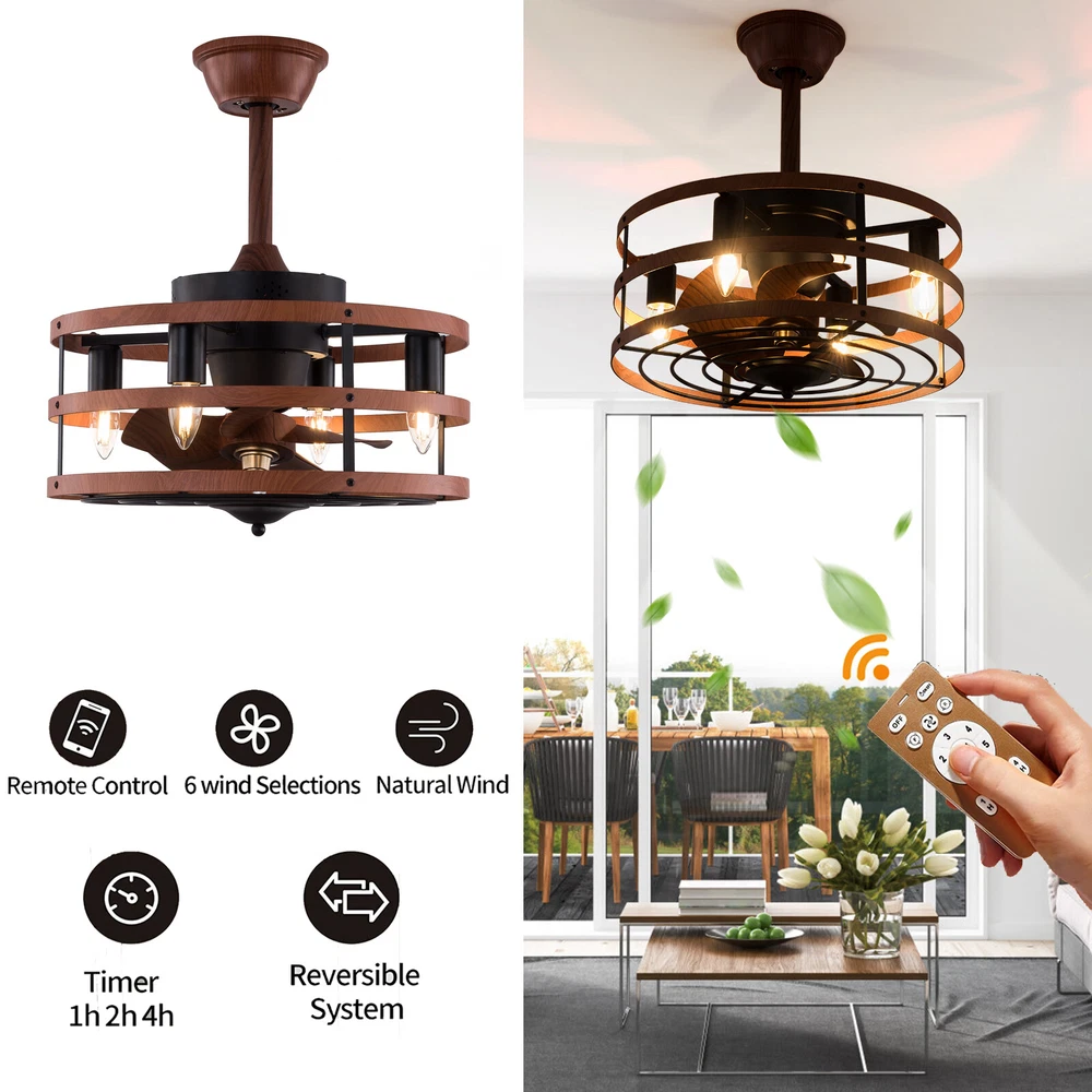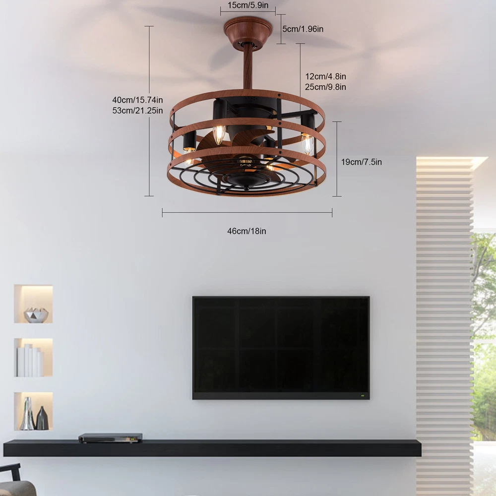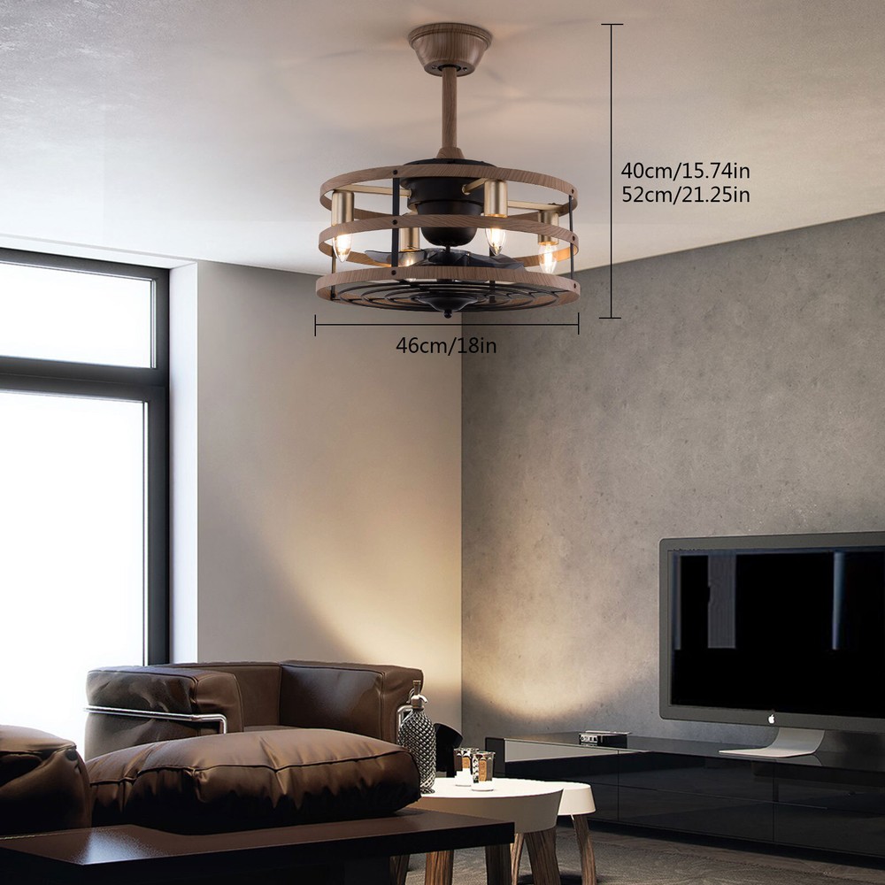 Modern Farmhouse Ceiling Fan Lamp Fixture with Remote Control Bladeless Max 60W Welcome❤ About this item 【 Unique and safe novel design 】 Imitation wood iron Shade , Unique to say the least, thecomposition of cage ceiling fan is quite striking, combining modernity and elegance in one. The exterior Brown Imitation wood iron lampshade a stylish theme while protecting the light bulb and the central fan blade. It's perfect for a loft or office space, hang in your eating area and enjoy the cool breeze. 【 Modern Ceiling Fan with Lights 】 Farmhouse Ceiling Fan with Lights, walnut textured black finish metal cage ceiling fan with 5 hand polished blades, perfect for decorating farmhouse, vintage, rustic and modern style homes. 【 Ceiling Fan with Lights and Remote 】 The Flush mount ceiling fan comes with 6 speeds and 1-2-4hour timer, it stops beeping or reverses when the remote control presses the button.and all the functions can be operated by the hand-held remote.The fan or illumination can be turned on separately. 【 Low Profile Ceiling Fan 】 18 × 18 × 7.5inches (about 46 × 46 × 19cm) small kitchen ceiling fan with light remote control. The copper motor is stable and does not shake, and the noise is small. This lighted recessed ceiling fan is perfect for low ceilings. 【 Reversible quiet motor 】 : Flush mount ceiling fan with DC reversible motor allows you to switch the air circulation mode from downward to upward in different seasons. 【 Universal for all seasons 】 The ceiling fan is convenient to switch between downwind and upwind modes, suitable for different seasons. Not only can it bring you coolness in summer, but also promote thermal circulation in winter. 【 Easy to Install 】 Enclosed ceiling fans equipped with 4.9" & 9.8" down rods for different ceiling heights , because have assembled most of the function combination nests before shipping, and the installation can be completed within an hour. 【 Easy to Install 】 hard wire. perfect design to illuminate your space, whether it is a kitchen island, dining room, bedroom, foyer or any other place. 【 Remote Control 】 : The Industrial ceiling fan lights fixture with 3-speed adjustment (low/medium/high) and 3 fan timing options (1/2/4H) sleep shutdown about multi-function remote control. The fan and lights can be controlled separately, which can control your ceiling fan quickly and easily!(max distance of 20 meters) Timing Function — Smart timing set to automatically POWER OFF light and fan after you fall asleep 。 ✦ Bulb Information Bulb requirements: use (4) E26bulbs, maximum 60watts, options include incandescent, fluorescent, LED, halogen, etc. (bulbs are not included) Wattage: Max 60W Voltage: DC110-220V Remote control: yes ✦ Material and Colour Material:metal +ABS fan blade(Water transfer wood imitation process) Easy to install: surface mounted. Products include English manuals, remote control and installation instructions, with the provided bracket, providing easier installation and detailed installation instructions. Applicable scenarios: The chandelier is suitable for home and commercial spaces,such as living room, dining room, kitchen island, bedroom, foyer, farmhouse , bar, restaurant, gallery, exhibition room, hotel, coffee shop, office 。 Package Included 1 *Ceiling fan (Bulbs Not Included) 2 *Down rods (12CM & 25CM) 1 * Accessories package 1 * User Manual ✦ Suggestion: 1. For a safe and secure installation, please ensure that the electrical box to which this fixture will be mounted is properly attached to a structural member of the building. 2. All wires are connected. When unpacking, be careful not to pull with wires as a bad connection may result. 3. Do not connect electricity until your fixture is fully assembled. *Description* ↓↓↓↓ Welcome to autocomponents999 Thank you for your support! If you have any questions,please feel free to contact us!!! Payment Delivery details Terms of sales About us Contact us Payment We accept ebay payment 。 Fees such as import duties, taxes are not included in the item price or shipping costs. These charges are the buyer's responsibility. Delivery details Shipping: 2-9 working days to: USA Terms of sales We maintain high standards of excellence and strive for hundred percent customer satisfaction. Feedback is very important to us. We hope that you contact us immediately before you give neutral or negative feedback, so that we can address your concerns. It is impossible to address issues if we do not know about them! About us Your satis faction is our ultimate goal. We work hard to earn your trust and future business. Our certified technicians have tested each item before shipping. The unit comes with 1 year limited warranty on all manufacturing defects. a) If you receive a defective item, you may return it or ask for a discount. Please contact us within 14 days after you receive the package. b) What you returned must be intact and in its original packaging as re? u. Customer is responsible for shipping costs of the returned item. c) We will cover the cost of shipping back t with the shipping rate indicated in the registration page. We will send you a new unit or refund the full payment you paid. Thank you. Contact us Business Hour Business Hour: Monday To Friday: 8:30 AM to 5:00 PM (Beijing China time) Due to time zones, our reply to your questions may not be immediately. But within above working time, we will reply your email within 24 hours. If it's non-workdays, please kindly be patient and wait till Monday. Please contact us with ebay message. Please feel free to contact us if you have any questions. Monday To Friday: 8:30 AM to 5:00 PM (Beijing China time) Due to time zones, our reply to your questions may not be immediately. But within above working time, we will reply your email within 24 hours. If it's non-workdays, please kindly be patient and wait till Monday. Please contact us with ebay message. Please feel free to contact us if