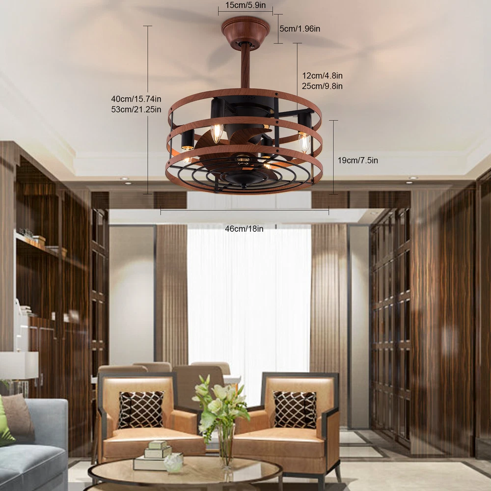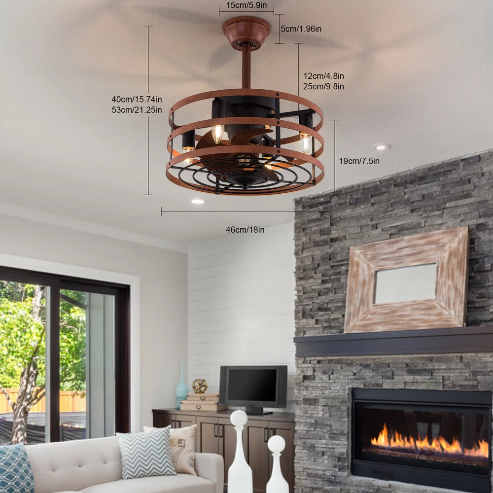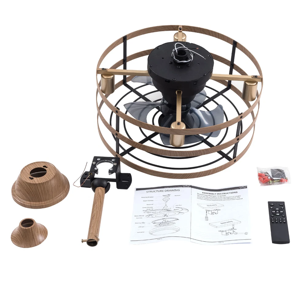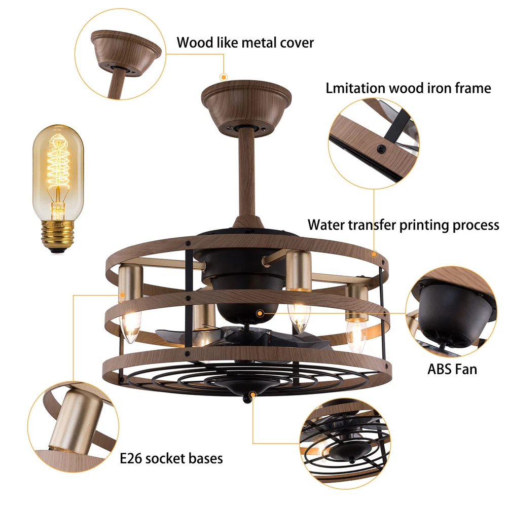 Modern Farmhouse Ceiling Fan Lamp Fixture with Remote Control Bladeless Max 60W Welcome❤ About this item 【 Unique and safe novel design 】 Imitation wood iron Shade , Unique to say the least, thecomposition of cage ceiling fan is quite striking, combining modernity and elegance in one. The exterior Brown Imitation wood iron lampshade a stylish theme while protecting the light bulb and the central fan blade. It's perfect for a loft or office space, hang in your eating area and enjoy the cool breeze. 【 Modern Ceiling Fan with Lights 】 Farmhouse Ceiling Fan with Lights, walnut textured black finish metal cage ceiling fan with 5 hand polished blades, perfect for decorating farmhouse, vintage, rustic and modern style homes. 【 Ceiling Fan with Lights and Remote 】 The Flush mount ceiling fan comes with 6 speeds and 1-2-4hour timer, it stops beeping or reverses when the remote control presses the button.and all the functions can be operated by the hand-held remote.The fan or illumination can be turned on separately. 【 Low Profile Ceiling Fan 】 18 × 18 × 7.5inches (about 46 × 46 × 19cm) small kitchen ceiling fan with light remote control. The copper motor is stable and does not shake, and the noise is small. This lighted recessed ceiling fan is perfect for low ceilings. 【 Reversible quiet motor 】 : Flush mount ceiling fan with DC reversible motor allows you to switch the air circulation mode from downward to upward in different seasons. 【 Universal for all seasons 】 The ceiling fan is convenient to switch between downwind and upwind modes, suitable for different seasons. Not only can it bring you coolness in summer, but also promote thermal circulation in winter. 【 Easy to Install 】 Enclosed ceiling fans equipped with 4.9" & 9.8" down rods for different ceiling heights , because have assembled most of the function combination nests before shipping, and the installation can be completed within an hour. 【 Easy to Install 】 hard wire. perfect design to illuminate your space, whether it is a kitchen island, dining room, bedroom, foyer or any other place. 【 Remote Control 】 : The Industrial ceiling fan lights fixture with 3-speed adjustment (low/medium/high) and 3 fan timing options (1/2/4H) sleep shutdown about multi-function remote control. The fan and lights can be controlled separately, which can control your ceiling fan quickly and easily!(max distance of 20 meters) Timing Function — Smart timing set to automatically POWER OFF light and fan after you fall asleep 。 ✦ Bulb Information Bulb requirements: use (4) E26bulbs, maximum 60watts, options include incandescent, fluorescent, LED, halogen, etc. (bulbs are not included) Wattage: Max 60W Voltage: DC110-220V Remote control: yes ✦ Material and Colour Material:metal +ABS fan blade(Water transfer wood imitation process) Easy to install: surface mounted. Products include English manuals, remote control and installation instructions, with the provided bracket, providing easier installation and detailed installation instructions. Applicable scenarios: The chandelier is suitable for home and commercial spaces,such as living room, dining room, kitchen island, bedroom, foyer, farmhouse , bar, restaurant, gallery, exhibition room, hotel, coffee shop, office 。 Package Included 1 *Ceiling fan (Bulbs Not Included) 2 *Down rods (12CM & 25CM) 1 * Accessories package 1 * User Manual ✦ Suggestion: 1. For a safe and secure installation, please ensure that the electrical box to which this fixture will be mounted is properly attached to a structural member of the building. 2. All wires are connected. When unpacking, be careful not to pull with wires as a bad connection may result. 3. Do not connect electricity until your fixture is fully assembled. *Description* ↓↓↓↓ Welcome to autocomponents999 Thank you for your support! If you have any questions,please feel free to contact us!!! Payment Delivery details Terms of sales About us Contact us Payment We accept ebay payment 。 Fees such as import duties, taxes are not included in the item price or shipping costs. These charges are the buyer's responsibility. Delivery details Shipping: 2-9 working days to: USA Terms of sales We maintain high standards of excellence and strive for hundred percent customer satisfaction. Feedback is very important to us. We hope that you contact us immediately before you give neutral or negative feedback, so that we can address your concerns. It is impossible to address issues if we do not know about them! About us Your satis faction is our ultimate goal. We work hard to earn your trust and future business. Our certified technicians have tested each item before shipping. The unit comes with 1 year limited warranty on all manufacturing defects. a) If you receive a defective item, you may return it or ask for a discount. Please contact us within 14 days after you receive the package. b) What you returned must be intact and in its original packaging as re? u. Customer is responsible for shipping costs of the returned item. c) We will cover the cost of shipping back t with the shipping rate indicated in the registration page. We will send you a new unit or refund the full payment you paid. Thank you. Contact us Business Hour Business Hour: Monday To Friday: 8:30 AM to 5:00 PM (Beijing China time) Due to time zones, our reply to your questions may not be immediately. But within above working time, we will reply your email within 24 hours. If it's non-workdays, please kindly be patient and wait till Monday. Please contact us with ebay message. Please feel free to contact us if you have any questions. Monday To Friday: 8:30 AM to 5:00 PM (Beijing China time) Due to time zones, our reply to your questions may not be immediately. But within above working time, we will reply your email within 24 hours. If it's non-workdays, please kindly be patient and wait till Monday. Please contact us with ebay message. Please feel free to contact us if
