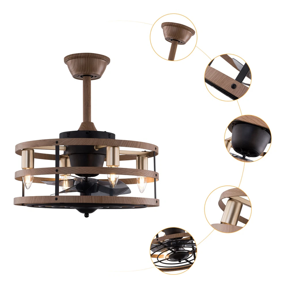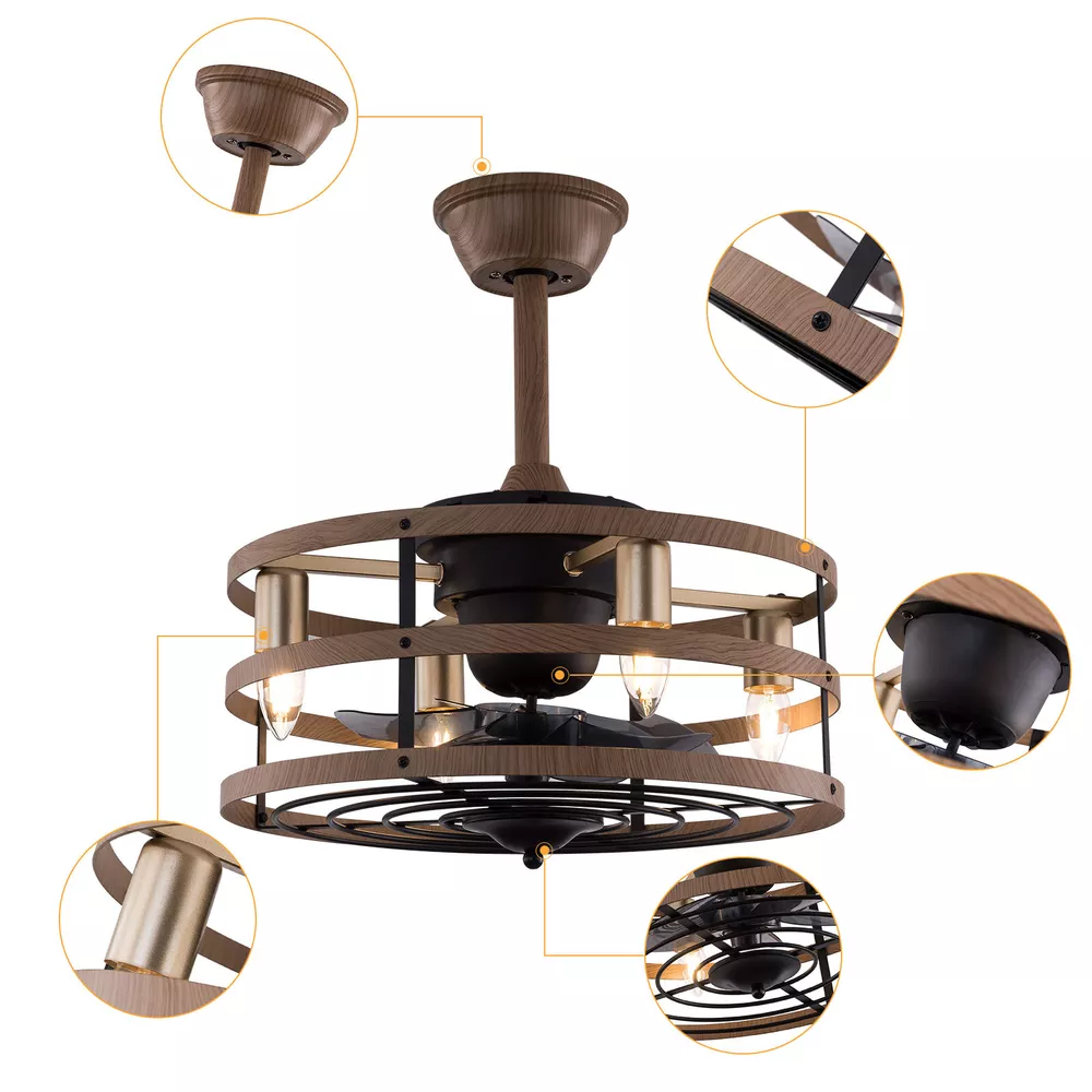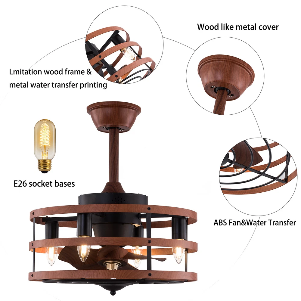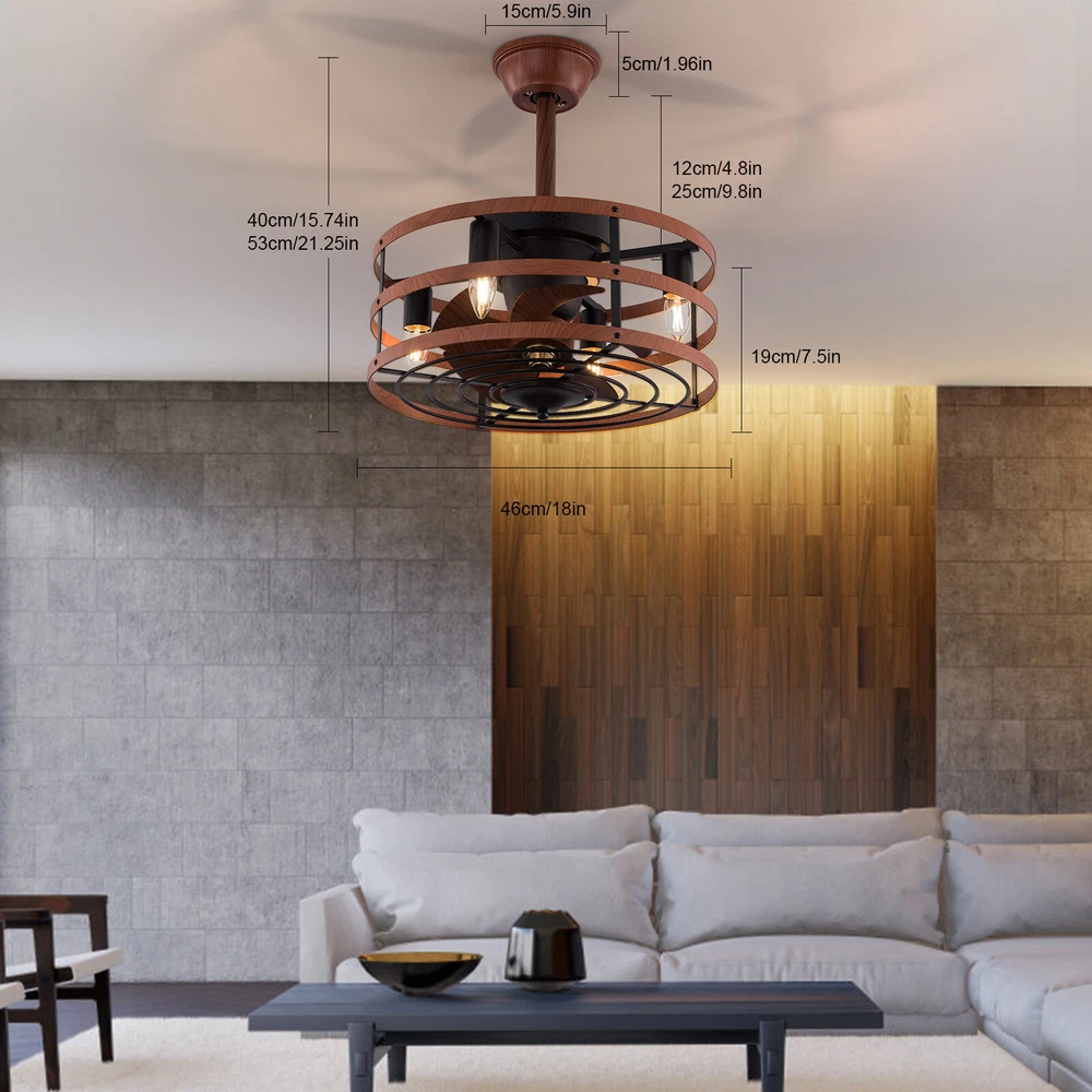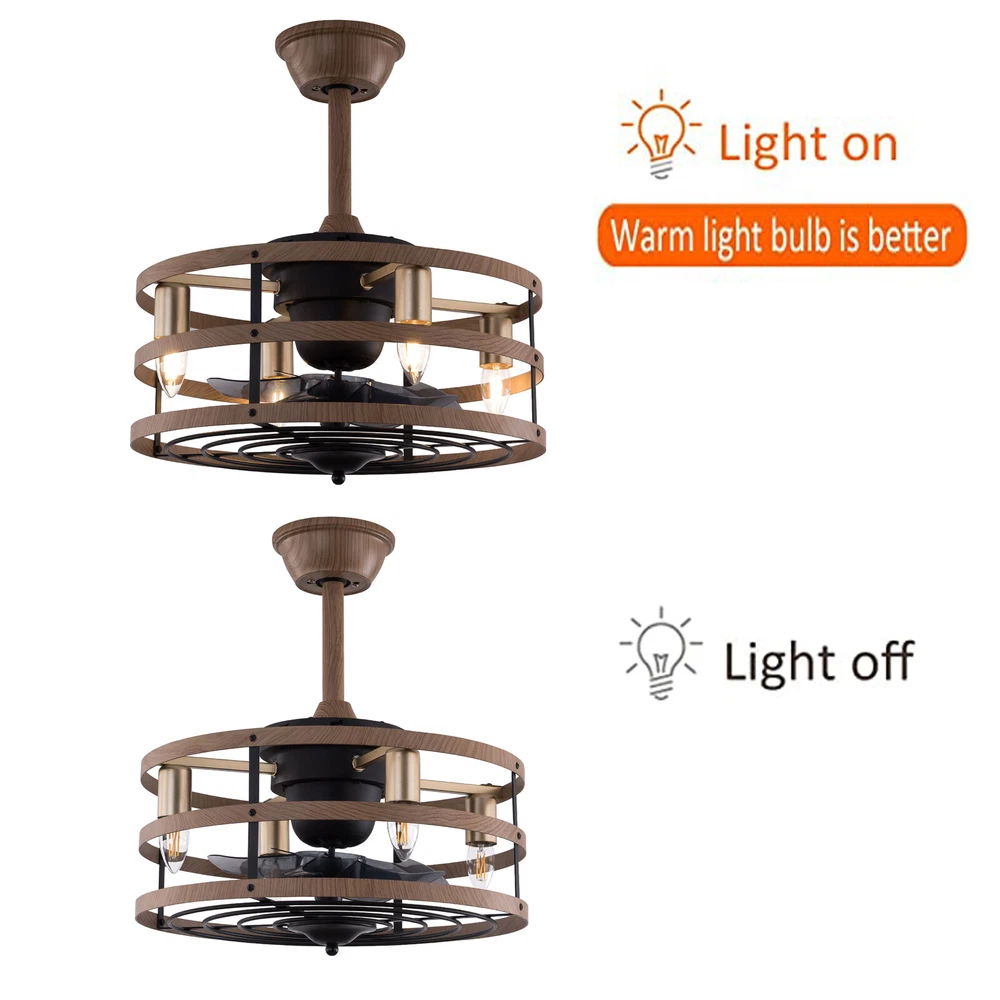 Modern Farmhouse Ceiling Fan Lamp Fixture with Remote Control Bladeless Max 60W Welcome❤ About this item 【 Unique and safe novel design 】 Imitation wood iron Shade , Unique to say the least, thecomposition of cage ceiling fan is quite striking, combining modernity and elegance in one. The exterior Brown Imitation wood iron lampshade a stylish theme while protecting the light bulb and the central fan blade. It's perfect for a loft or office space, hang in your eating area and enjoy the cool breeze. 【 Modern Ceiling Fan with Lights 】 Farmhouse Ceiling Fan with Lights, walnut textured black finish metal cage ceiling fan with 5 hand polished blades, perfect for decorating farmhouse, vintage, rustic and modern style homes. 【 Ceiling Fan with Lights and Remote 】 The Flush mount ceiling fan comes with 6 speeds and 1-2-4hour timer, it stops beeping or reverses when the remote control presses the button.and all the functions can be operated by the hand-held remote.The fan or illumination can be turned on separately. 【 Low Profile Ceiling Fan 】 18 × 18 × 7.5inches (about 46 × 46 × 19cm) small kitchen ceiling fan with light remote control. The copper motor is stable and does not shake, and the noise is small. This lighted recessed ceiling fan is perfect for low ceilings. 【 Reversible quiet motor 】 : Flush mount ceiling fan with DC reversible motor allows you to switch the air circulation mode from downward to upward in different seasons. 【 Universal for all seasons 】 The ceiling fan is convenient to switch between downwind and upwind modes, suitable for different seasons. Not only can it bring you coolness in summer, but also promote thermal circulation in winter. 【 Easy to Install 】 Enclosed ceiling fans equipped with 4.9" & 9.8" down rods for different ceiling heights , because have assembled most of the function combination nests before shipping, and the installation can be completed within an hour. 【 Easy to Install 】 hard wire. perfect design to illuminate your space, whether it is a kitchen island, dining room, bedroom, foyer or any other place. 【 Remote Control 】 : The Industrial ceiling fan lights fixture with 3-speed adjustment (low/medium/high) and 3 fan timing options (1/2/4H) sleep shutdown about multi-function remote control. The fan and lights can be controlled separately, which can control your ceiling fan quickly and easily!(max distance of 20 meters) Timing Function — Smart timing set to automatically POWER OFF light and fan after you fall asleep 。 ✦ Bulb Information Bulb requirements: use (4) E26bulbs, maximum 60watts, options include incandescent, fluorescent, LED, halogen, etc. (bulbs are not included) Wattage: Max 60W Voltage: DC110-220V Remote control: yes ✦ Material and Colour Material:metal +ABS fan blade(Water transfer wood imitation process) Easy to install: surface mounted. Products include English manuals, remote control and installation instructions, with the provided bracket, providing easier installation and detailed installation instructions. Applicable scenarios: The chandelier is suitable for home and commercial spaces,such as living room, dining room, kitchen island, bedroom, foyer, farmhouse , bar, restaurant, gallery, exhibition room, hotel, coffee shop, office 。 Package Included 1 *Ceiling fan (Bulbs Not Included) 2 *Down rods (12CM & 25CM) 1 * Accessories package 1 * User Manual ✦ Suggestion: 1. For a safe and secure installation, please ensure that the electrical box to which this fixture will be mounted is properly attached to a structural member of the building. 2. All wires are connected. When unpacking, be careful not to pull with wires as a bad connection may result. 3. Do not connect electricity until your fixture is fully assembled. *Description* ↓↓↓↓ Welcome to autocomponents999 Thank you for your support! If you have any questions,please feel free to contact us!!! Payment Delivery details Terms of sales About us Contact us Payment We accept ebay payment 。 Fees such as import duties, taxes are not included in the item price or shipping costs. These charges are the buyer's responsibility. Delivery details Shipping: 2-9 working days to: USA Terms of sales We maintain high standards of excellence and strive for hundred percent customer satisfaction. Feedback is very important to us. We hope that you contact us immediately before you give neutral or negative feedback, so that we can address your concerns. It is impossible to address issues if we do not know about them! About us Your satis faction is our ultimate goal. We work hard to earn your trust and future business. Our certified technicians have tested each item before shipping. The unit comes with 1 year limited warranty on all manufacturing defects. a) If you receive a defective item, you may return it or ask for a discount. Please contact us within 14 days after you receive the package. b) What you returned must be intact and in its original packaging as re? u. Customer is responsible for shipping costs of the returned item. c) We will cover the cost of shipping back t with the shipping rate indicated in the registration page. We will send you a new unit or refund the full payment you paid. Thank you. Contact us Business Hour Business Hour: Monday To Friday: 8:30 AM to 5:00 PM (Beijing China time) Due to time zones, our reply to your questions may not be immediately. But within above working time, we will reply your email within 24 hours. If it's non-workdays, please kindly be patient and wait till Monday. Please contact us with ebay message. Please feel free to contact us if you have any questions. Monday To Friday: 8:30 AM to 5:00 PM (Beijing China time) Due to time zones, our reply to your questions may not be immediately. But within above working time, we will reply your email within 24 hours. If it's non-workdays, please kindly be patient and wait till Monday. Please contact us with ebay message. Please feel free to contact us if