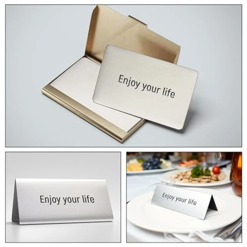 Features: Show your love and care: You can send these blank metal business cards to your classmates, colleagues, clients, neighbors, guests, friends, family members, loved ones, and others, expressing your love and care for them. Assorted places to use: These small business cards can be applied in many places, such as offices, conference rooms, hotels, restaurants, coffee shops, homes, and so on, helping you mark names and others. Specifications: Material: 304 stainless steel Color: as picture shown Size: approx. 86 x 54 mm/ 3.39 x 2.13 inches Thickness: approx. 0.5 mm Package includes: 30 x Blank metal business cards Notes: Manual measurement, please allow slight errors on size. The color may exist slight difference due to different screen displays. Enough to Share with Others: the package will bring you 30 pieces of steel cards in total, classic and cool, very useful in your daily life; An abundant quantity can easily meet your daily application and replacement requirements, you can also share them with others Reliable Workmanship for Lasting Service: made of 304 stainless steel, these blanks metal business cards are solid and hard, not easy to bend, deform, or break under pressure, smooth and flat for you to touch, and can accompany you for a long time Proper Dimension for You to Apply: each steel business card measures approx. 0.5 mm in thickness, thick and firm, easy for you to carve; And it is approx. 86 x 54 mm/ 3.39 x 2.13 inches in size, compact and portable, light in weight, convenient for you to carry around and store in pockets, bags, and more Unfinished Design to Explore DIY Pleasure: the metal card is blank on both sides, you can carve prints, texts, words, and others you want, which are hard to wear; You can also create your own personalized cards, showing your style and taste in this way Versatile Usage: these blank business cards can be made into different items according to different needs, such as gift cards, VIP cards, table cards, labels, business cards, nameplates, and many others, provide you with a lot of convenience