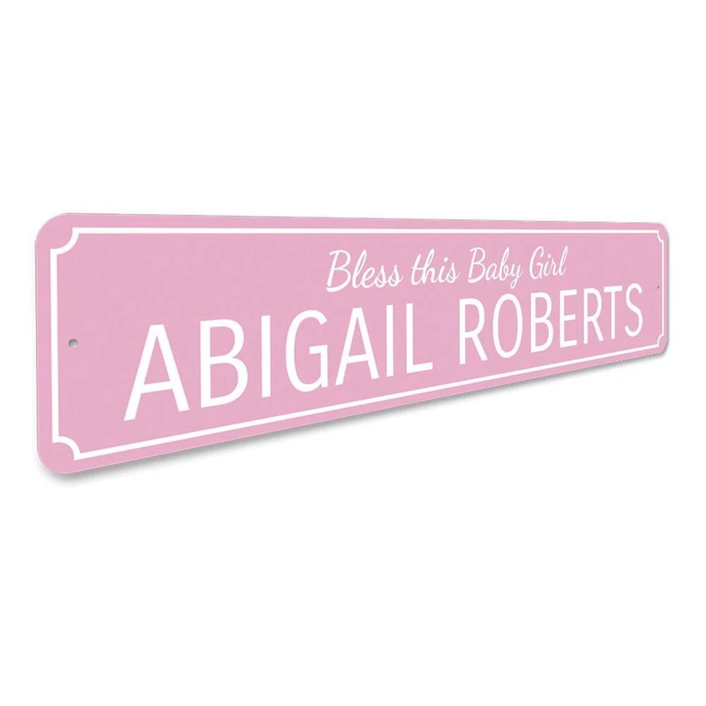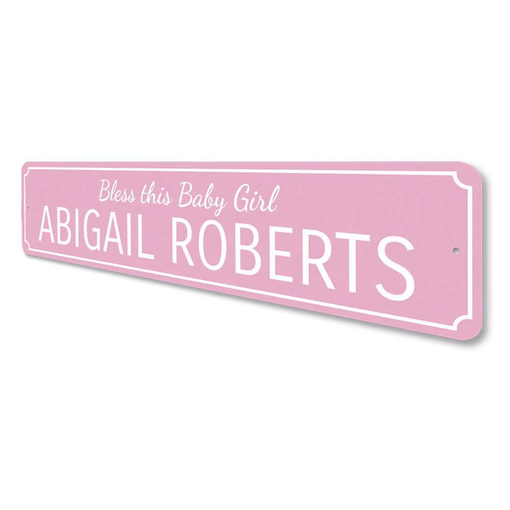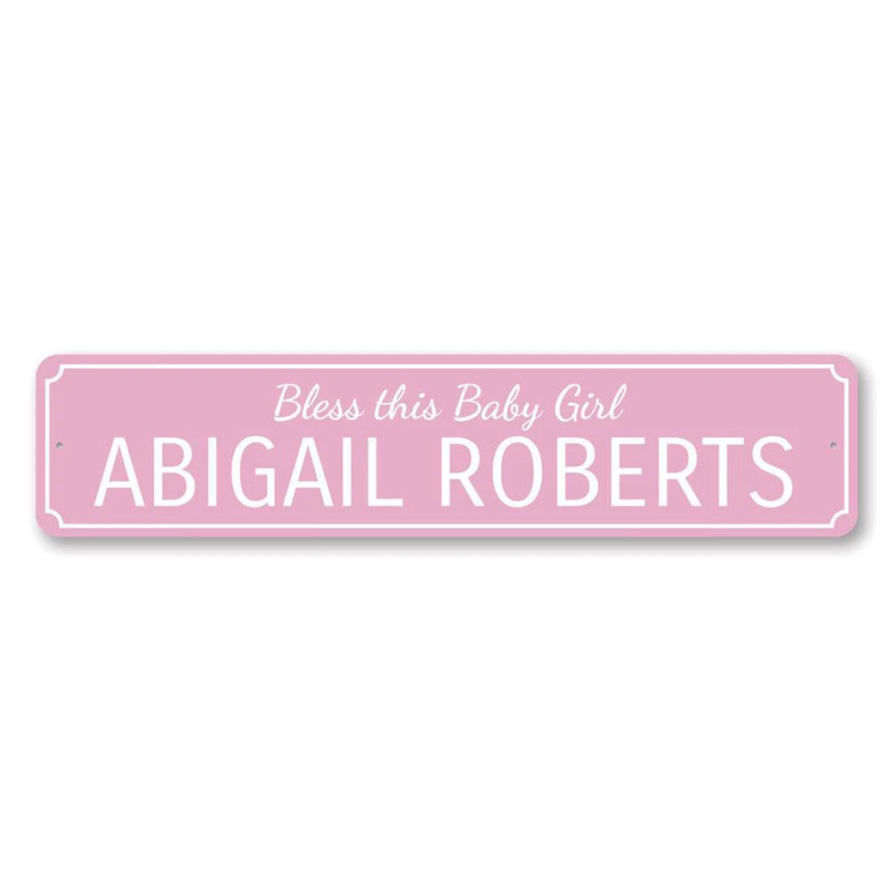 The Lizton Sign Shop Product Description Bless This Baby Girl Sign, Custom Newborn Name Aluminum Metal Decor Sign **there may be slight variations in color and text spacing, however your sign will be very similar to the image above. Quality Aluminum Street Signs Sign Information Aluminum Brand New Sign Comes with rounded corners and pre-drilled for easy hanging. We use the highest quality materials - 100% USA-made! Great Gift Idea - Our signs truly make a one of a kind gift. Personalize the sign with the text you want to add. Custom text for the sign can be sent to us via email. A BRAND NEW SIGN!! All of our street signs are made of premium materials. The sign itself is made of aluminum and will never rust providing years of enjoyment indoors and outdoors. No Cheap plastic!! The Lizton Sign Shop specializes in quality personalized custom aluminum signs for any occasion. These make the perfect sign for any man cave, office, basement, garage, college dorm, kids bedroom, game room, bar, pub, tavern or countless other places. *Colors may vary slightly from one computer screen to the next but the image should be very close. All content and designs are subject to copyright and may not be reproduced in any form. Payment Methods We would prefer payment to be made through paypal but we also accept all major credit cards. If you select the credit card option please contact us after you make your purchase and we can walk you through the steps to make a secure payment. Return Policies We will accept returns within 30 days of the purchase date. The buyer is responsible for any costs to return the item or items. Returns will only be accepted for items that were damaged in shipping or if we made an error in the manufacturing of your item, i.e. spelling error.