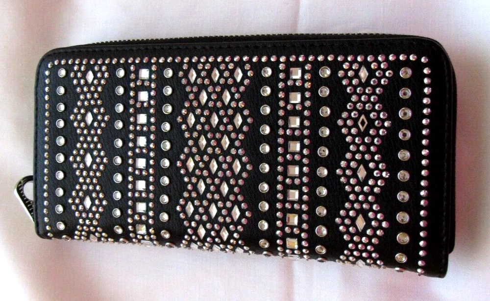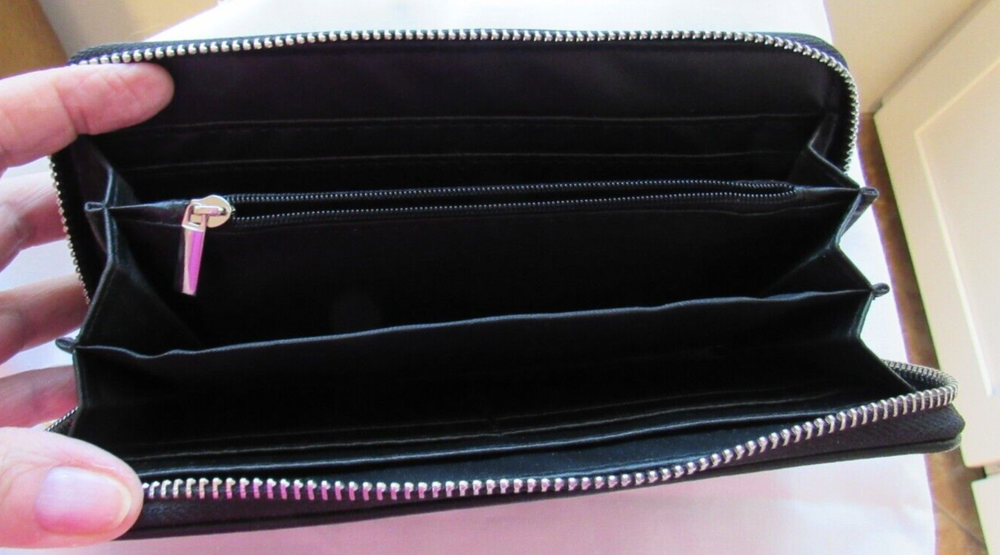 BLING WALLET, ZIP CLOSURE BLACK/SILVER INSIDE CREDIT CARD HOLDERS ZIP FOR CHANGE, POCKET FOR CASH SEE ALL PICTURES AS DESCRIPTION